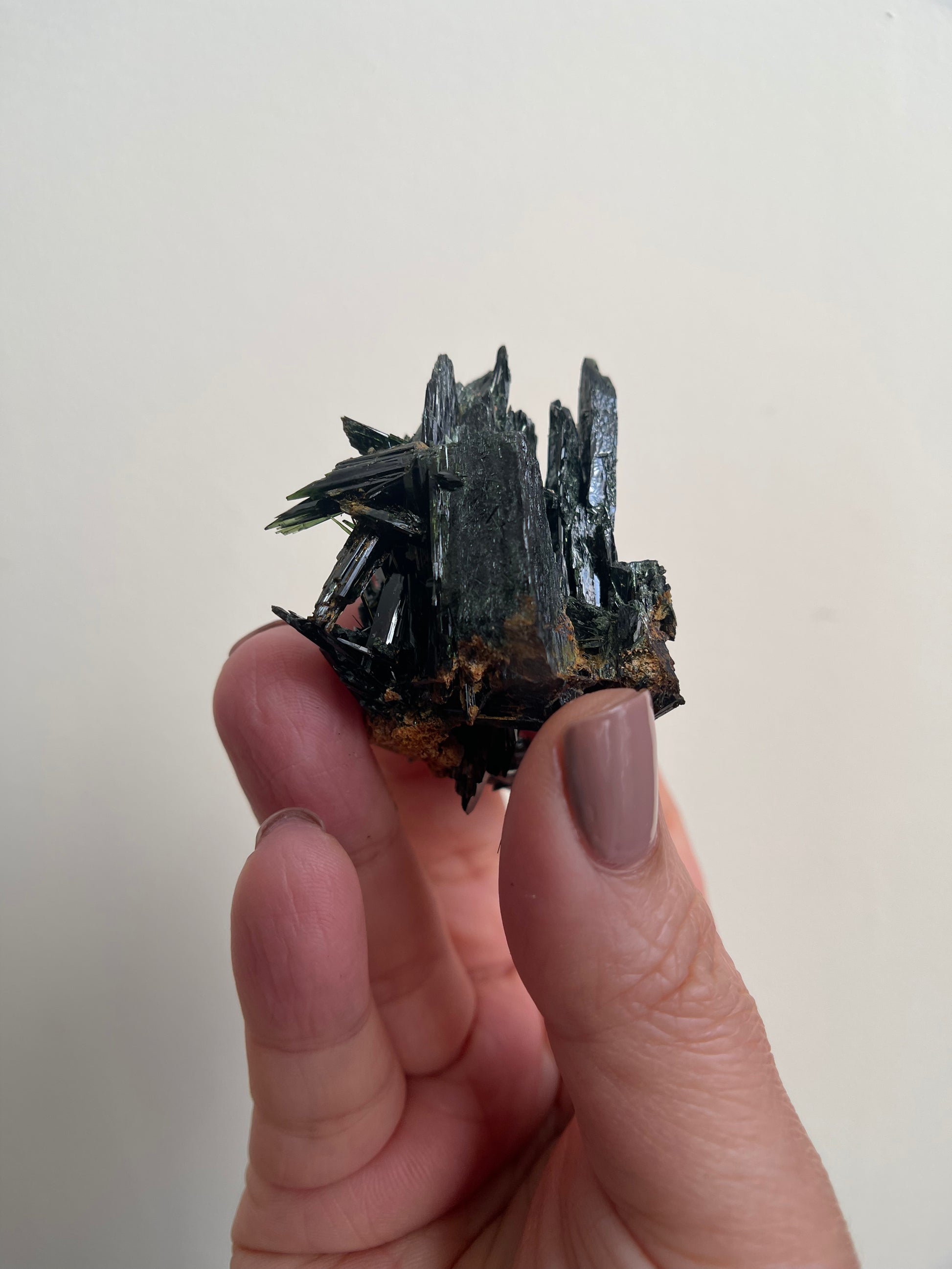 Aegirine is known as the stone of Integrity and Self, imbued with a powerful and noble energy that protects you against dark attacks and negative energy. When you are in resonance with its powerful vibrations, it urges you to hold your head high in truth and certainty, even in environments filled with dark energy trying to harm and attach to your etheric body. It reveals your potential and your right to follow your truest convictions in life with graceful and unbreakable determination. It is a powerful stone for overcoming self-consciousness over your body and appearance and building up self-love and self-appreciation. Aegirine shows you that you are worthy and deserving of respect, honor, and love.
