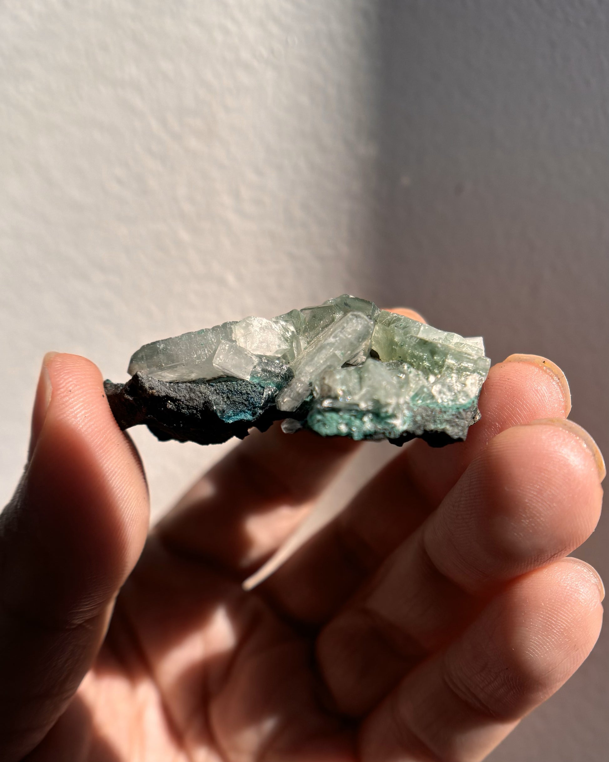 This sacred trio of Baryte, Chrysocolla, and Malachite aligns your spirit with divine timing, where intention, action, and healing converge. Baryte anchors you in the present while quietly opening channels to higher guidance, helping you recognize which steps are yours to take and which to surrender. Chrysocolla tunes your voice to ancient wisdom, guiding you to speak with clarity, care, and purpose, as though your words are ripples in a sacred current. Malachite, the stone of transformation, moves like a gentle force through old emotional wounds, clearing what has lingered too long and preparing you to meet each moment renewed, aligned, and ready.
