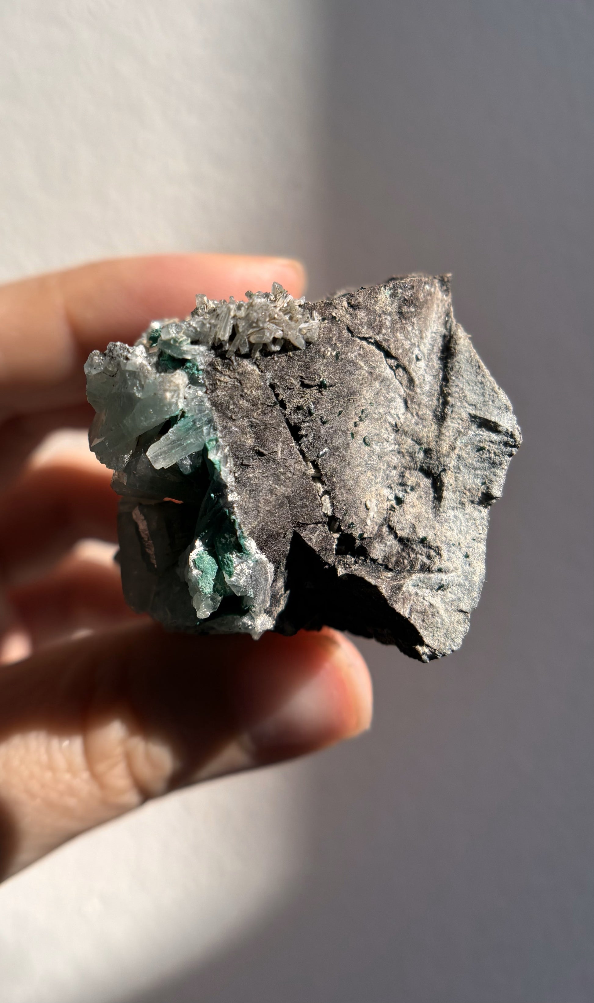 This sacred trio of Baryte, Chrysocolla, and Malachite aligns your spirit with divine timing, where intention, action, and healing converge. Baryte anchors you in the present while quietly opening channels to higher guidance, helping you recognize which steps are yours to take and which to surrender. Chrysocolla tunes your voice to ancient wisdom, guiding you to speak with clarity, care, and purpose, as though your words are ripples in a sacred current. Malachite, the stone of transformation, moves like a gentle force through old emotional wounds, clearing what has lingered too long and preparing you to meet each moment renewed, aligned, and ready.