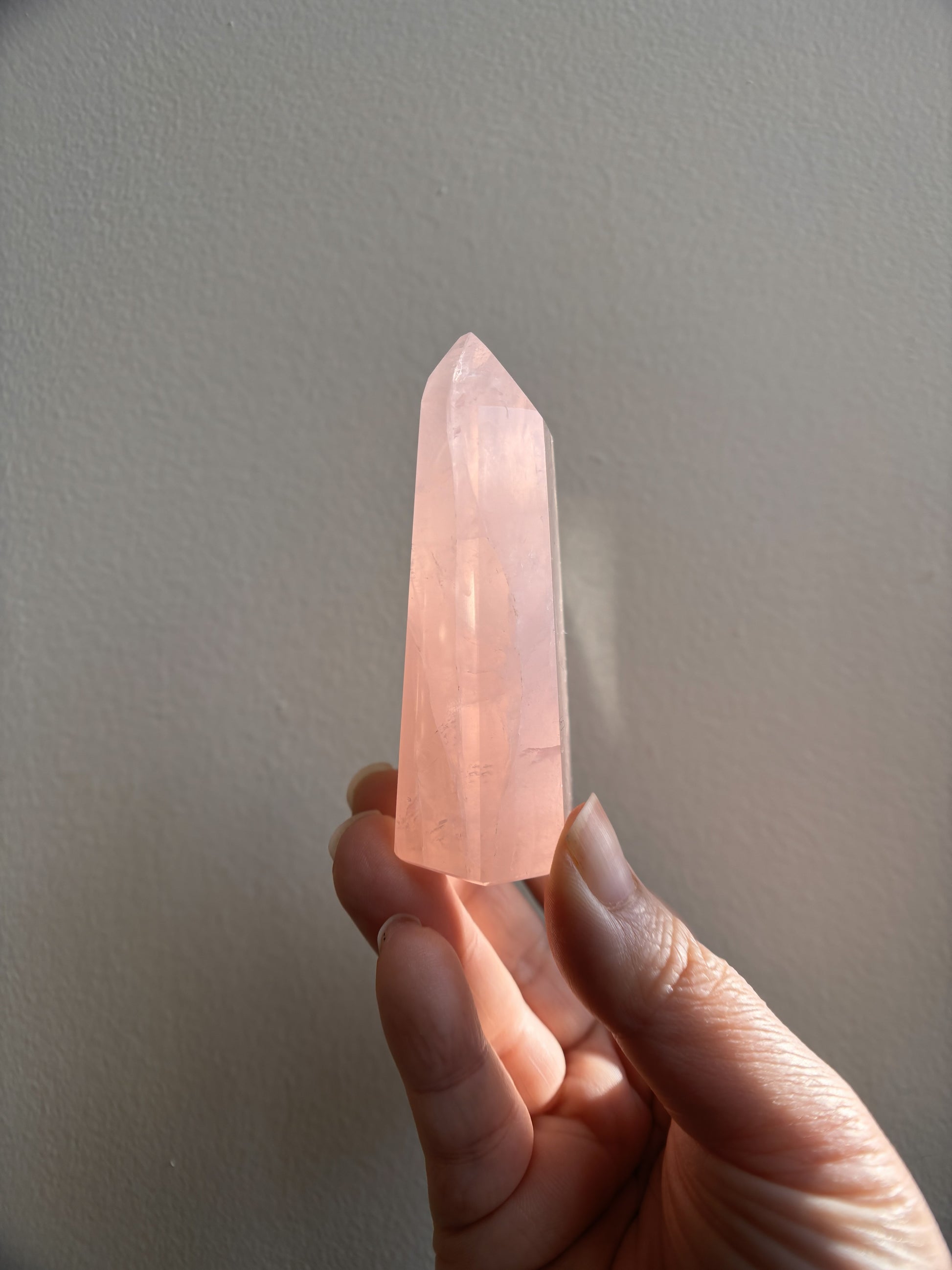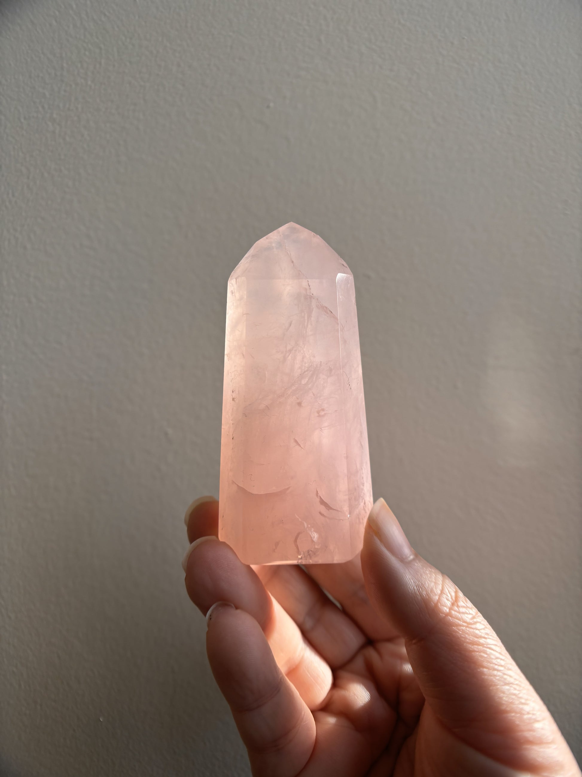 This Bahia Rose Quartz tower helps you hold yourself steady when your emotions pull you off balance. Its soft, even clarity brings light to what you are feeling without overwhelming you, giving you the room to understand yourself instead of reacting from strain. This stone strengthens compassionate presence by helping you stay fair with yourself, so your empathy comes from grounded confidence, not depletion.