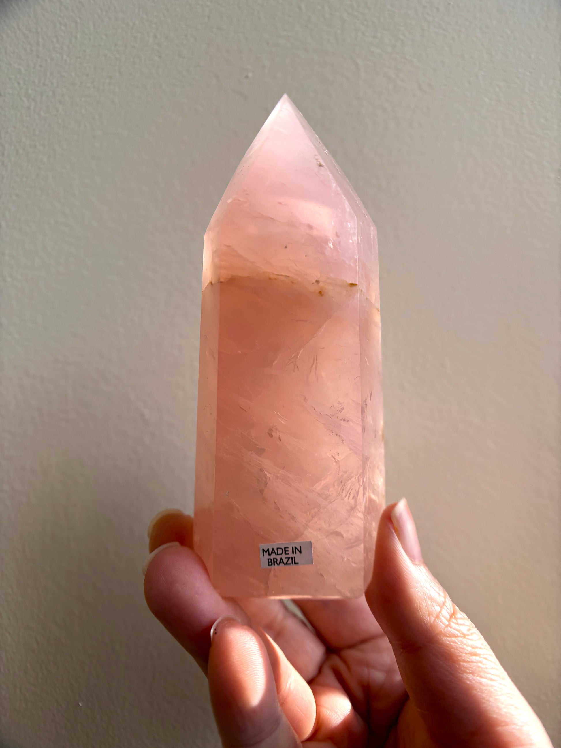This Bahia Rose Quartz tower helps you hold yourself steady when your emotions pull you off balance. Its soft, even clarity brings light to what you are feeling without overwhelming you, giving you the room to understand yourself instead of reacting from strain. This stone strengthens compassionate presence by helping you stay fair with yourself, so your empathy comes from grounded confidence, not depletion.