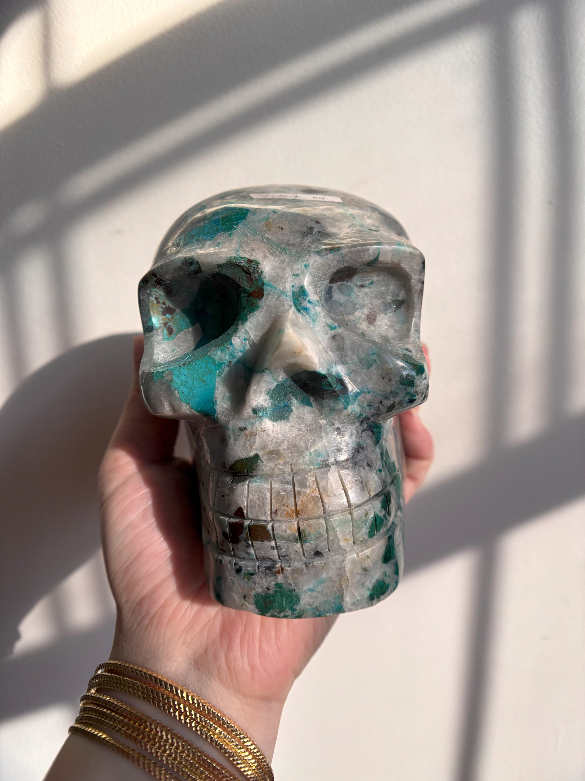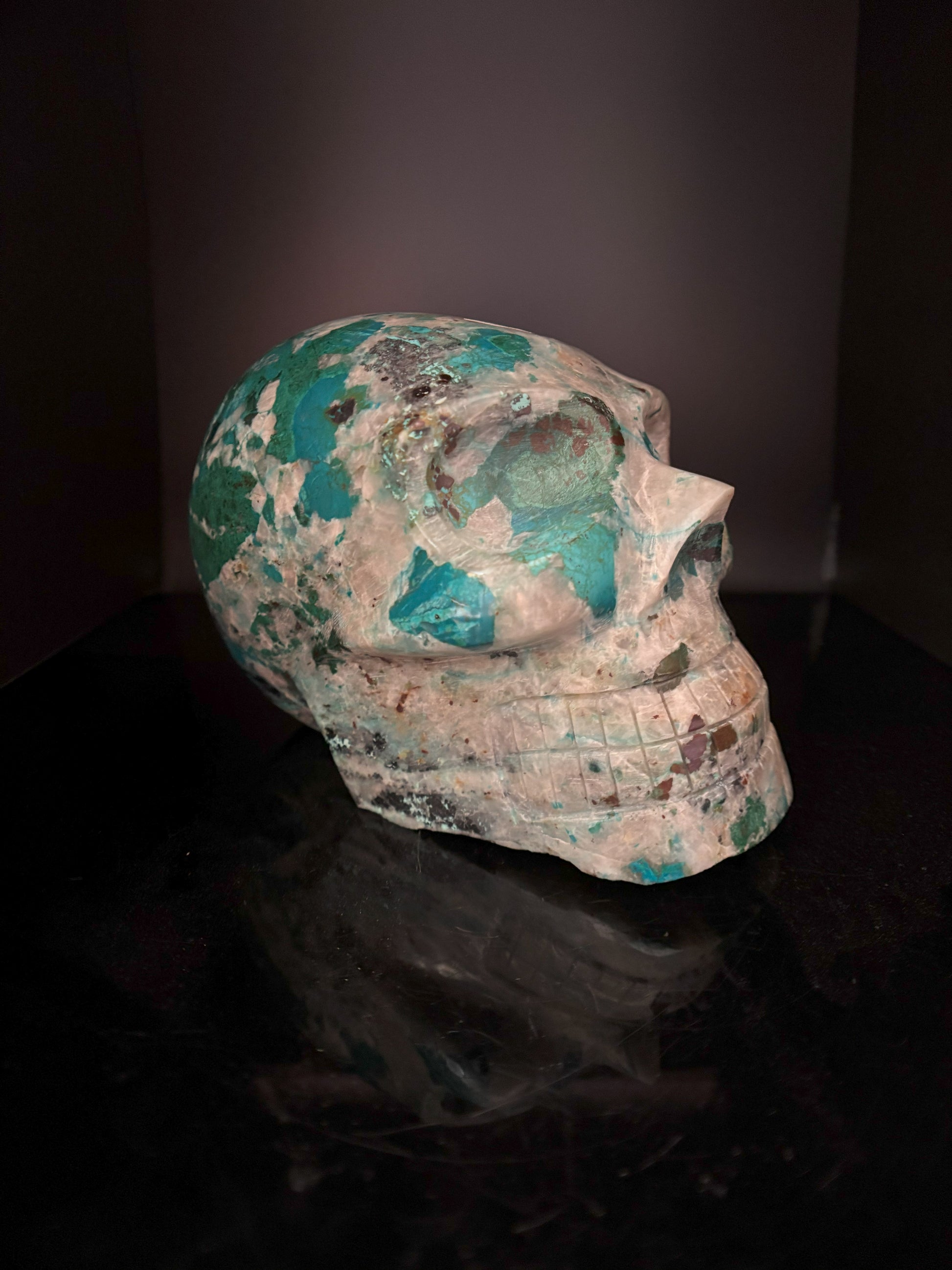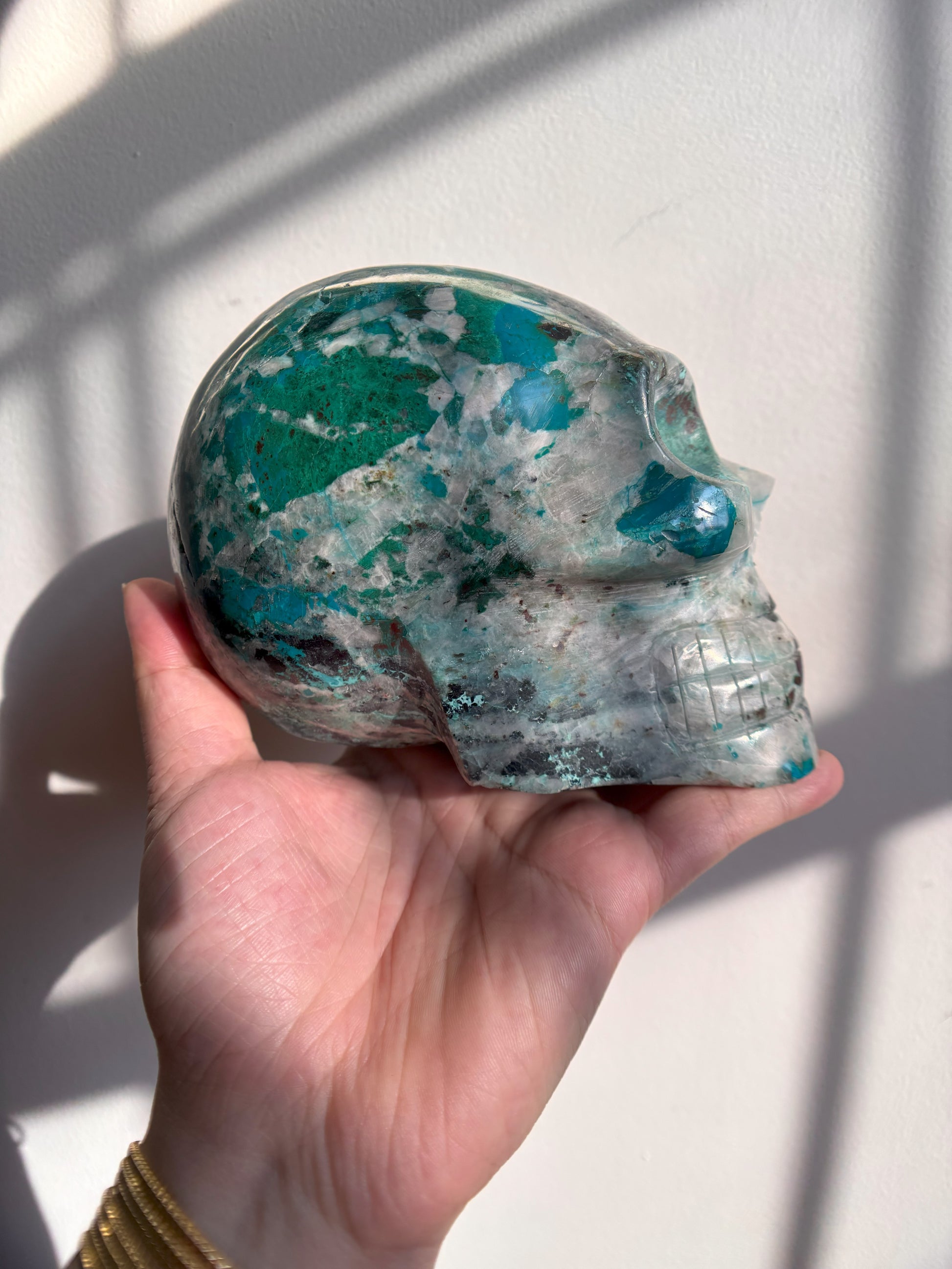 Chrysocolla and Quartz Skull 2.07kg (4.6lbs)