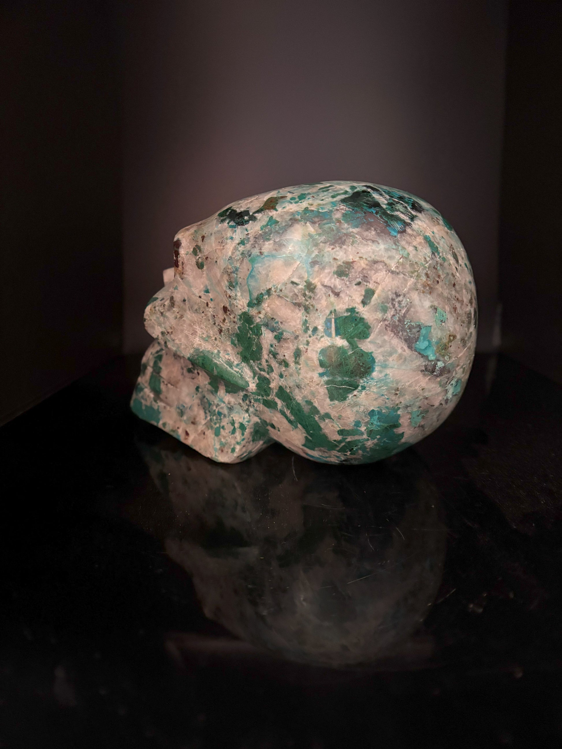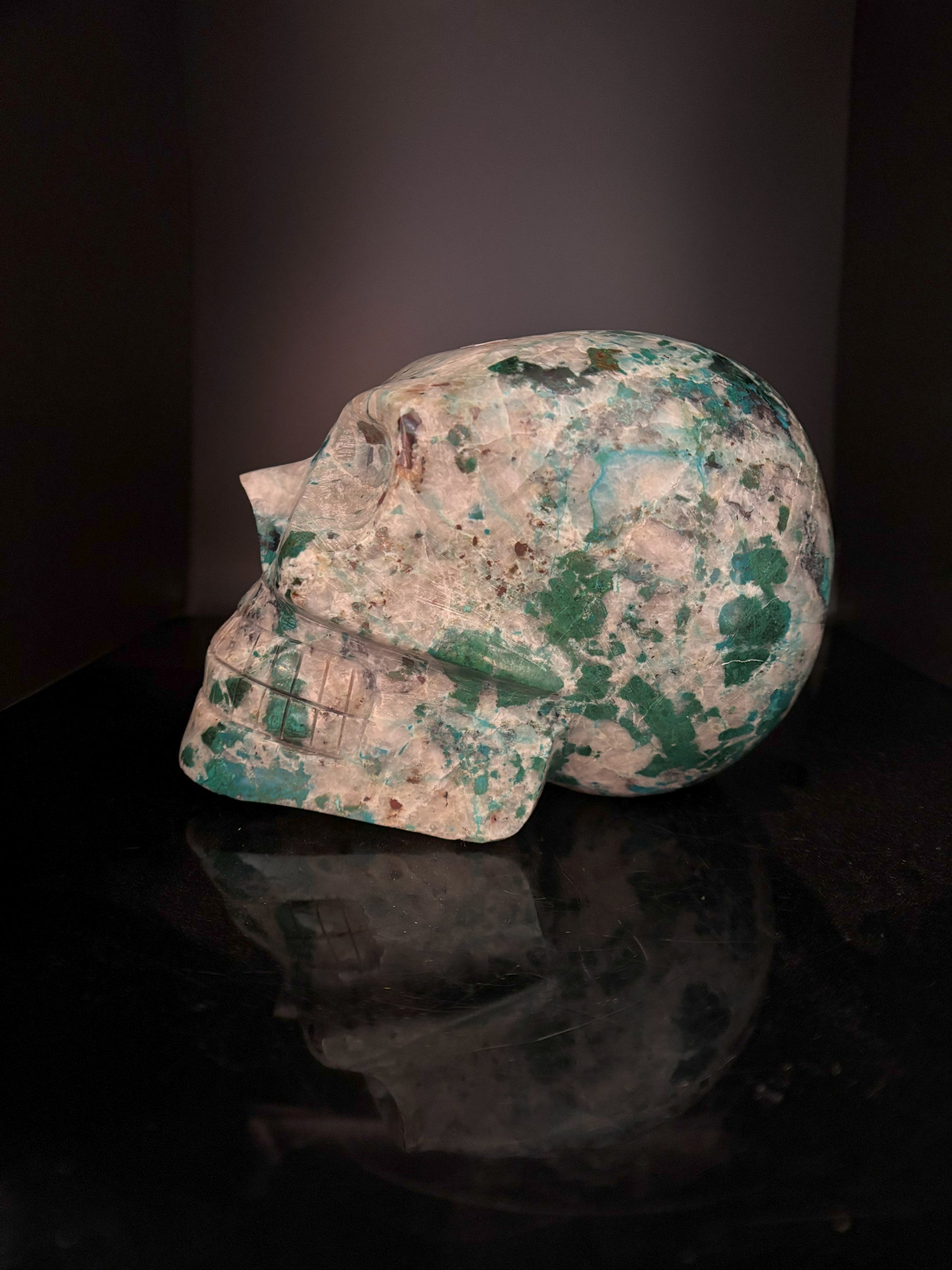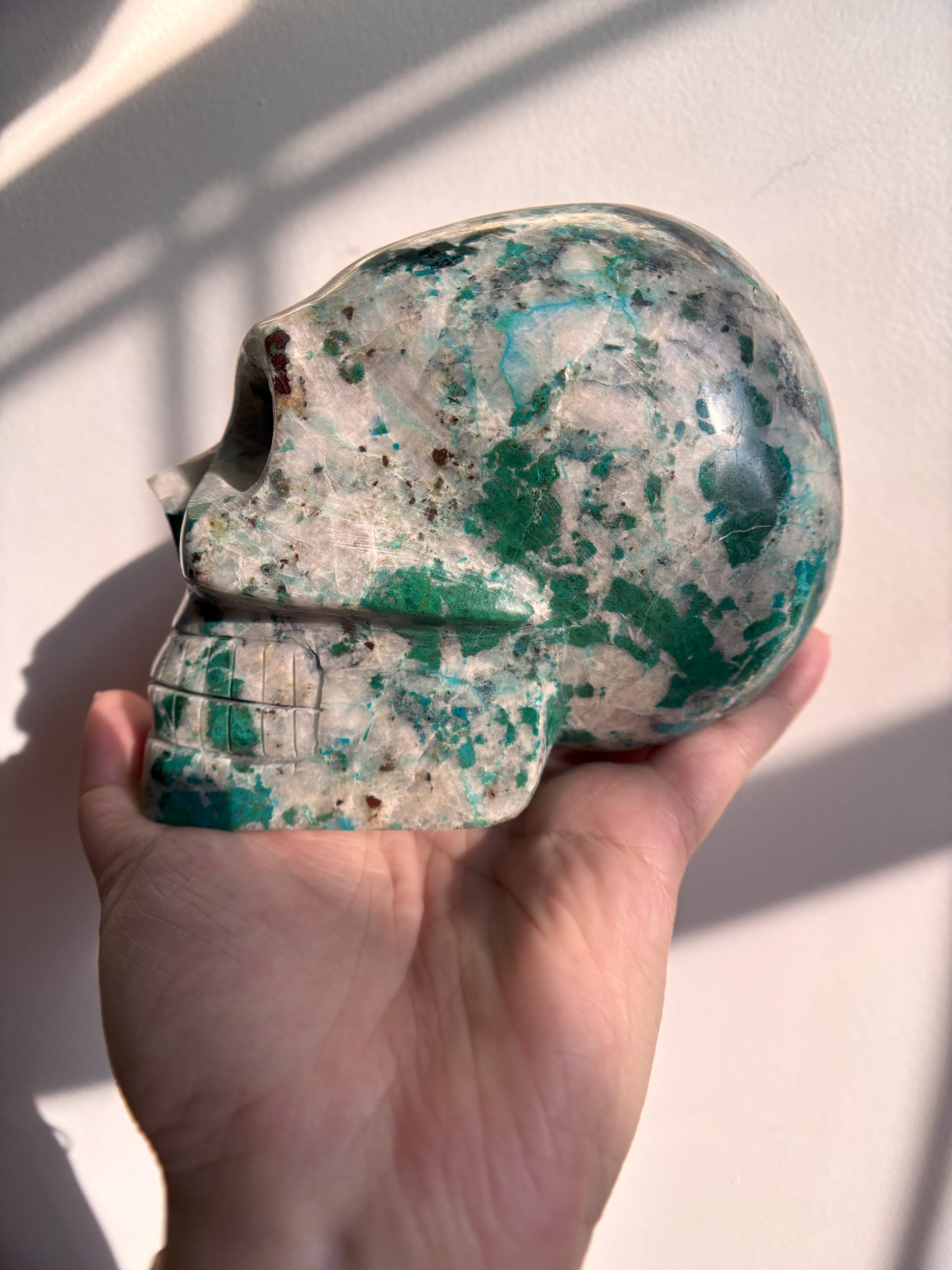 Chrysocolla and Quartz Skull 2.07kg (4.6lbs)