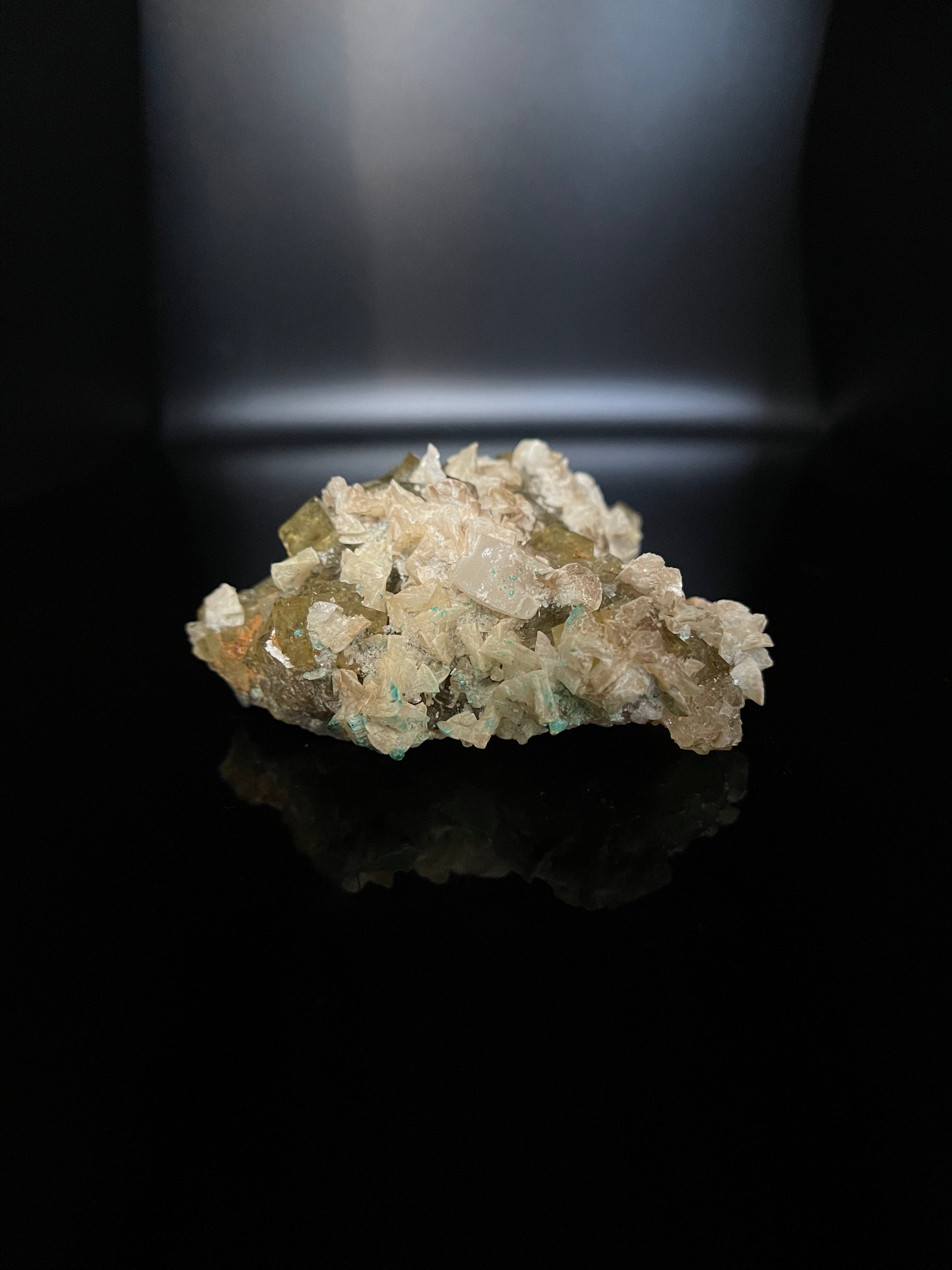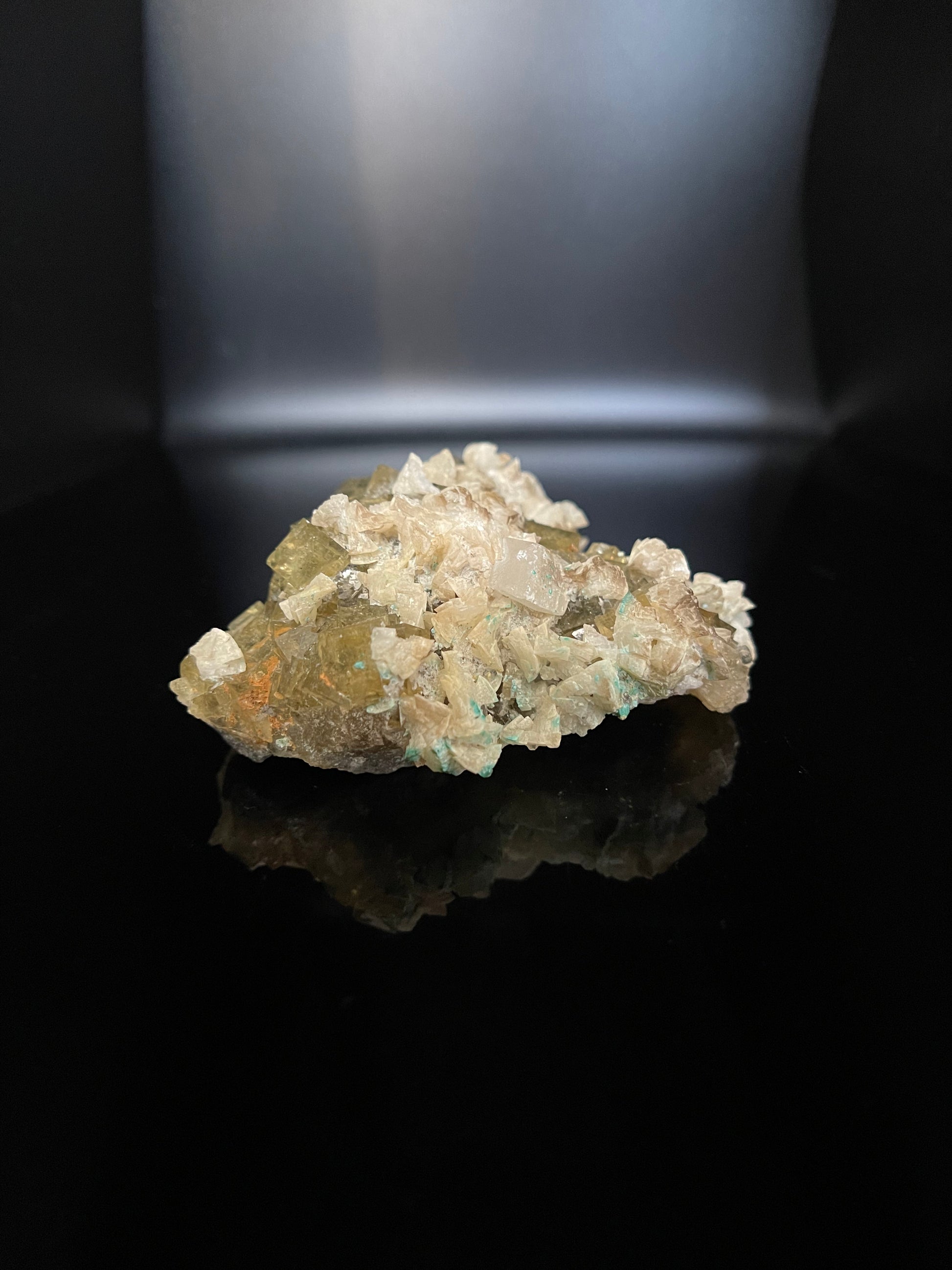 This Spanish fluorite from the Moscano mine is mixed with Baryte, Calcite, and Pyrite.