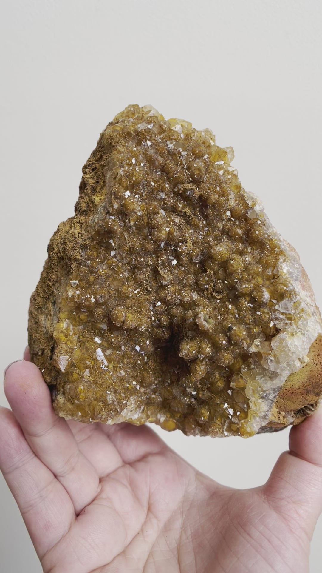 Golden Healer Citrine is a high-vibrational, combination stone of powerful healing and self-compassion. By gently guiding you away from self-criticism and blame, this stone assists you in accepting yourself, your circumstances, and your experiences with compassion and understanding. Its fiery appearance represents the light and strength that can be let in through the cracks caused by trauma, detaching its hold on you. It is a stone that helps you see that there is healing within compassion, guiding you on your first path towards reawakening.