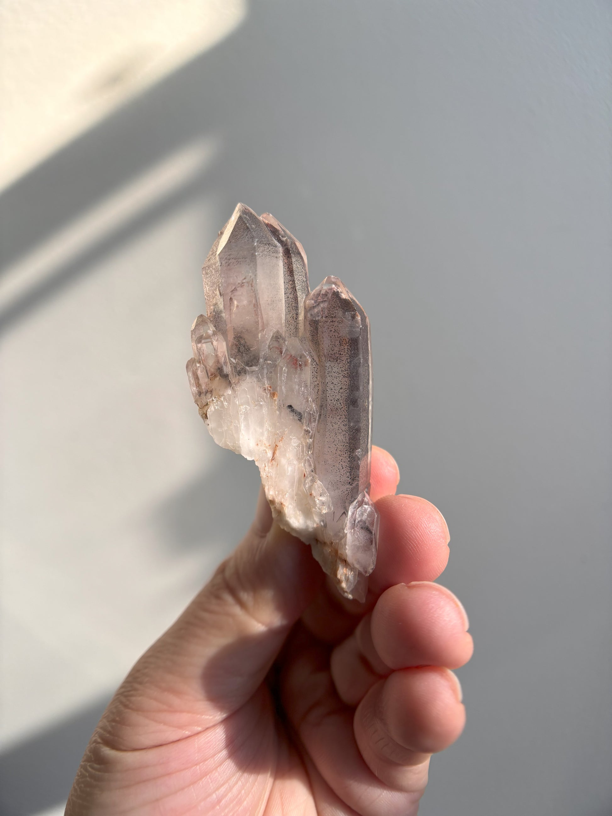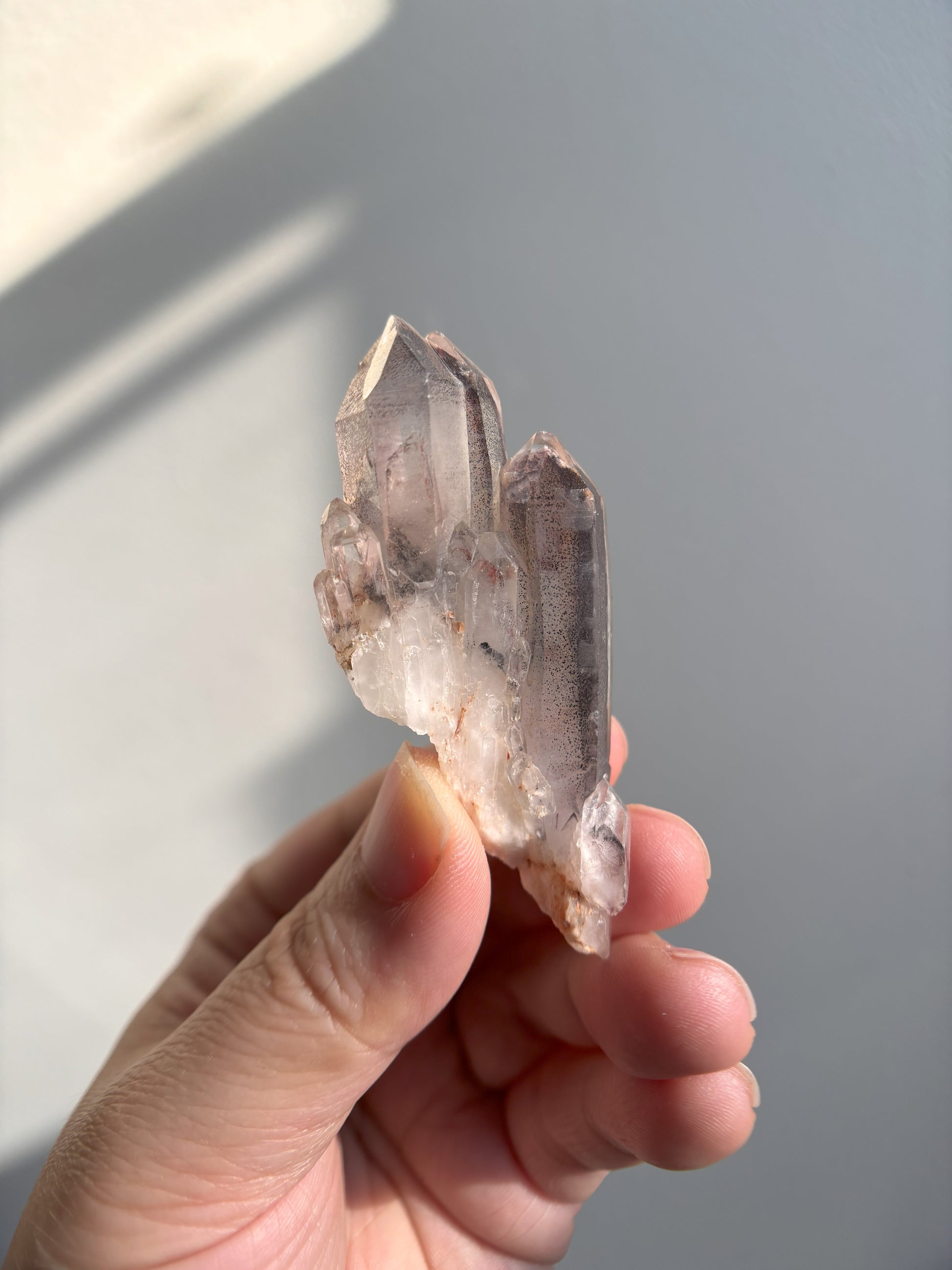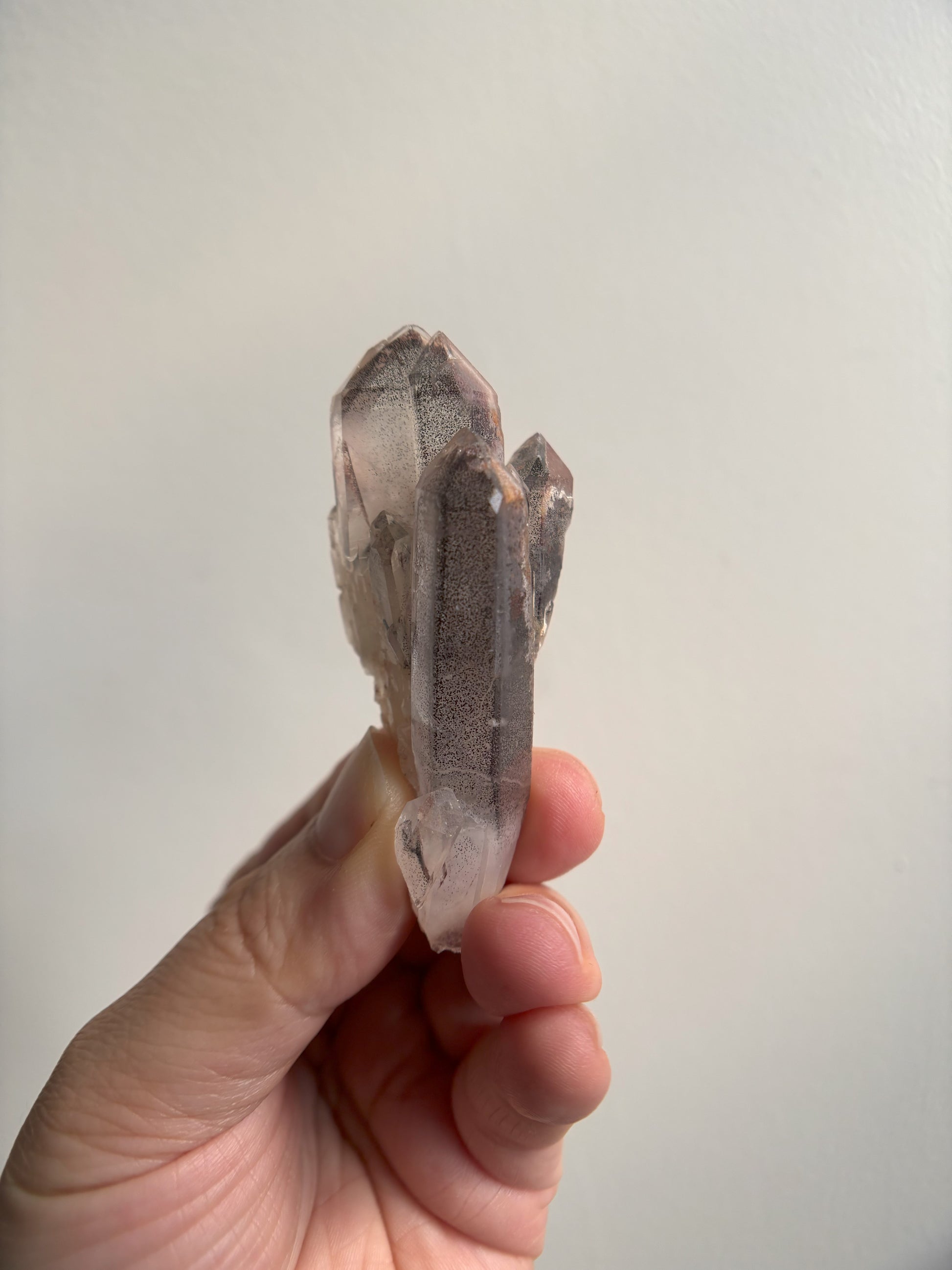 This Red Phantom Quartz, named "Ishuko," draws its fiery power from the red hematite inclusions, symbolizing the flames of one's transformation and inner strength. Ishuko reminds you that like a fireplace, your core holds an eternal fire, capable of burning away the old and igniting new life and direction.