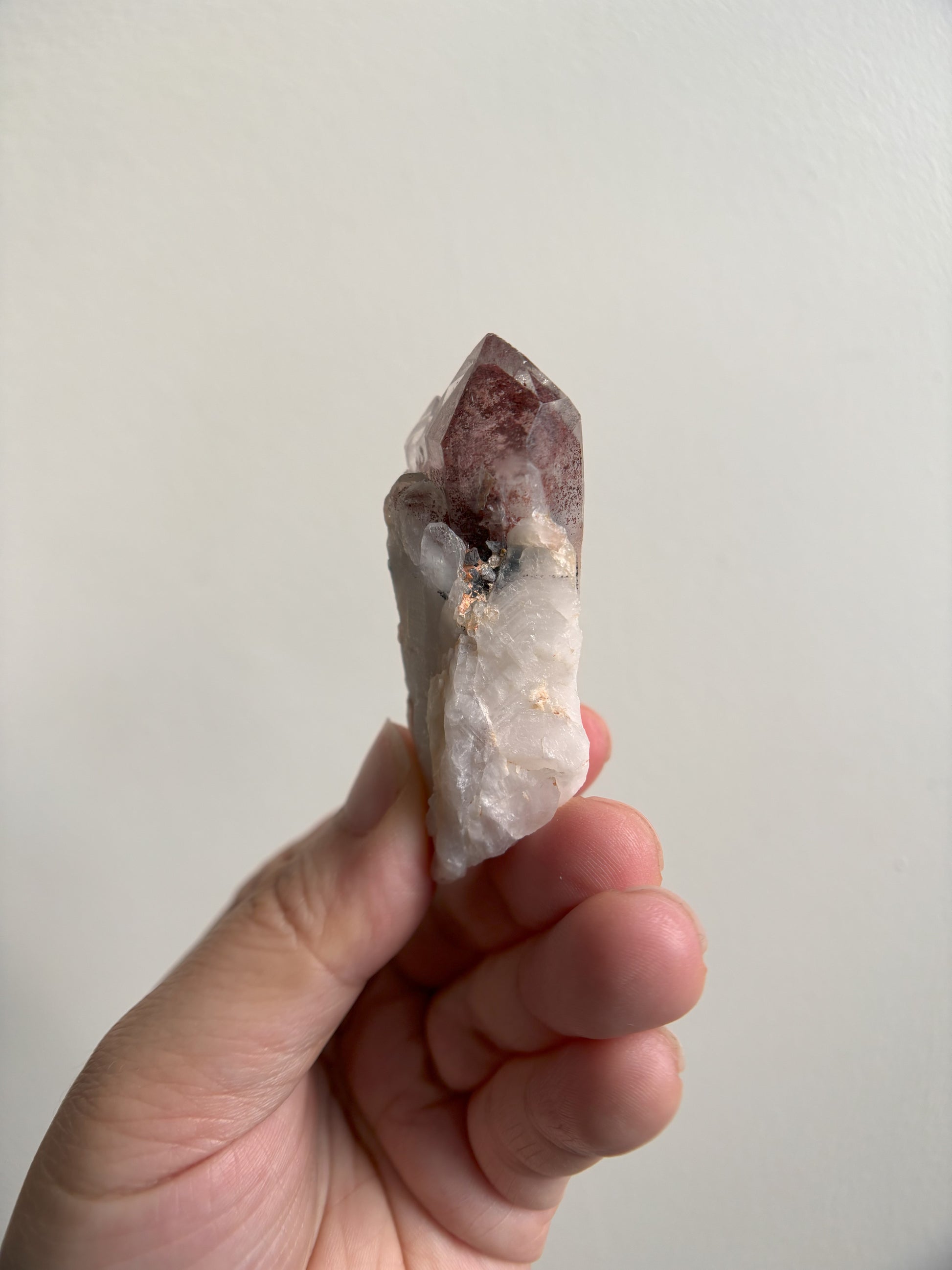 This Red Phantom Quartz, named "Ishuko," draws its fiery power from the red hematite inclusions, symbolizing the flames of one's transformation and inner strength. Ishuko reminds you that like a fireplace, your core holds an eternal fire, capable of burning away the old and igniting new life and direction.