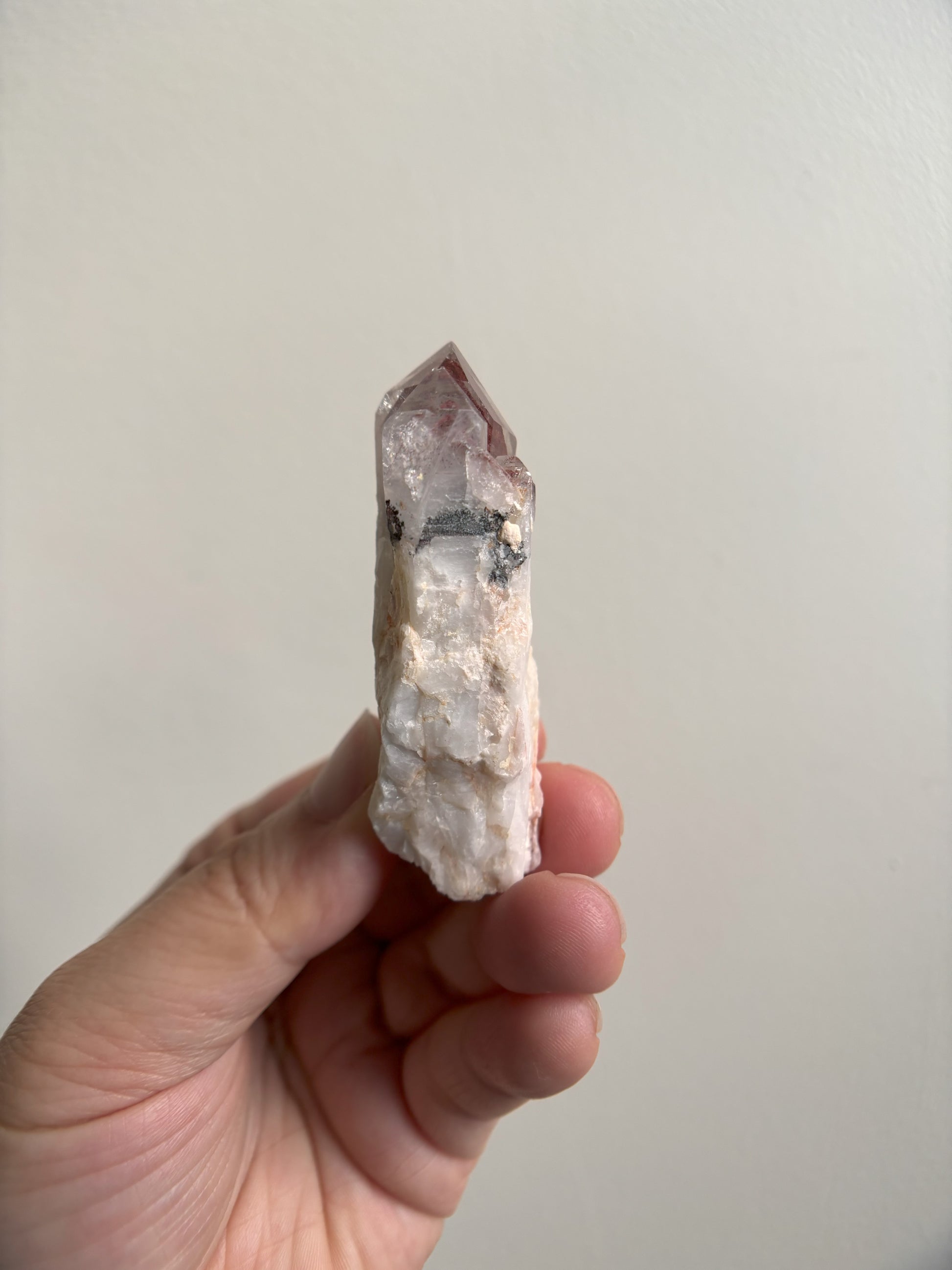 The hematite within this quartz connects you to the earth's grounding energy, offering protection and stability while enhancing courage and focus. Ishuko encourages you to step into your power and to use the fire to reshape its purpose to create the path you want.