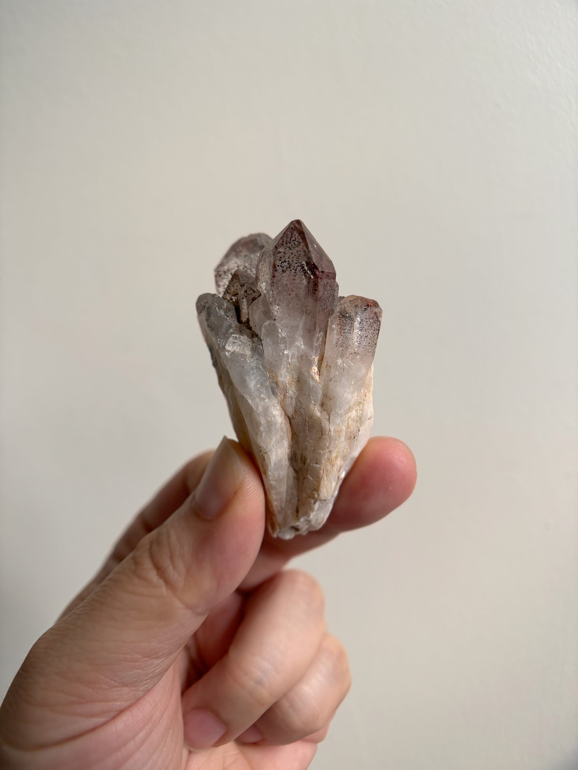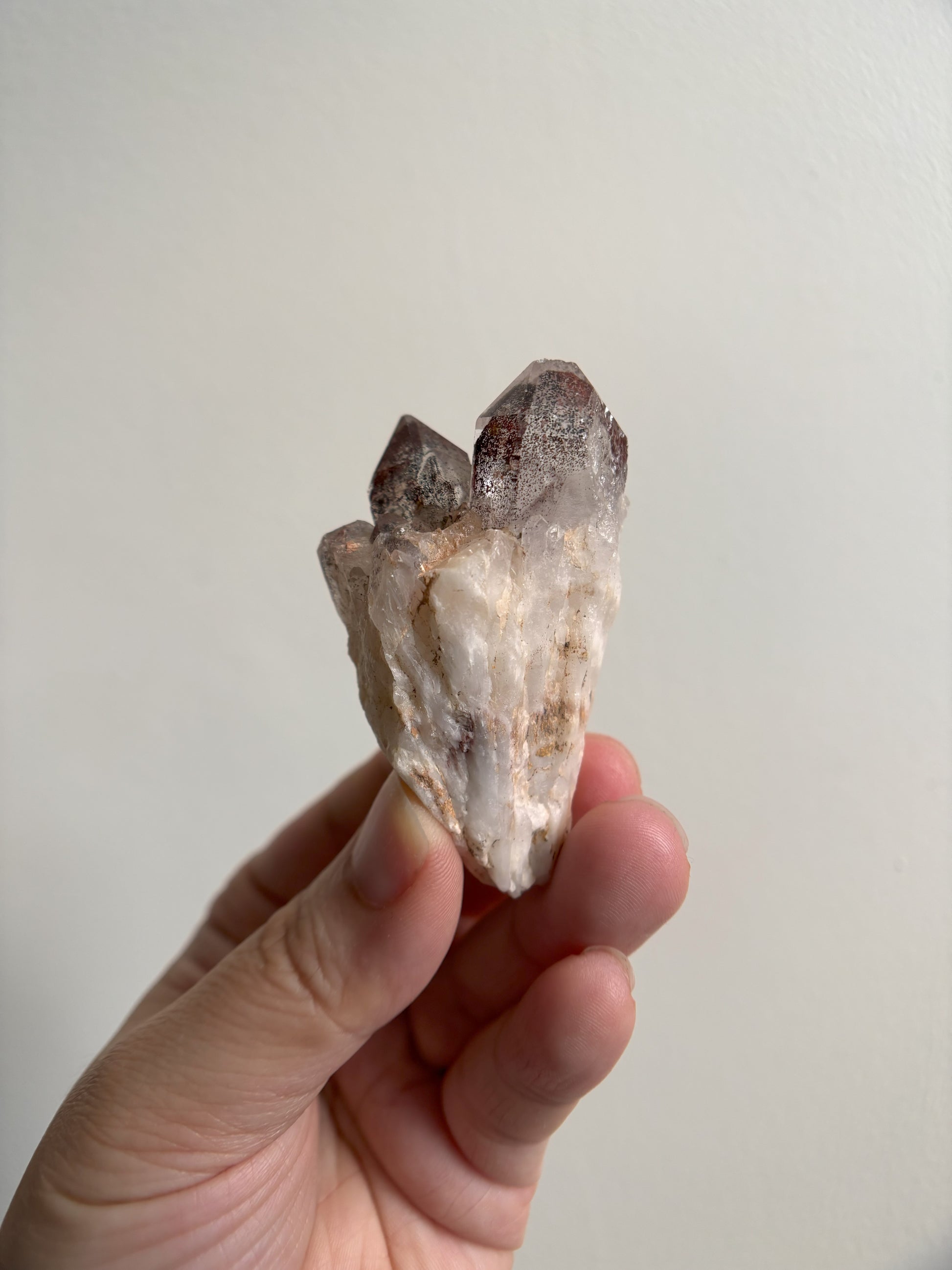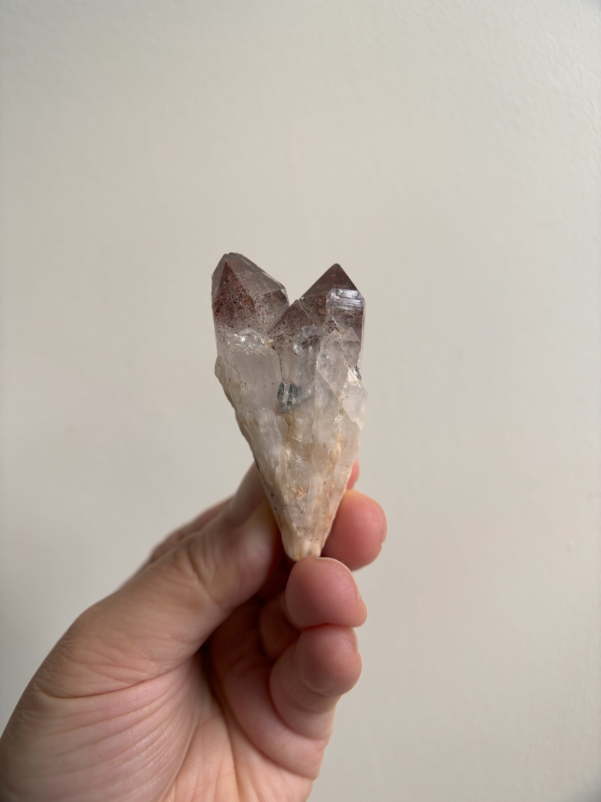 This Red Phantom Quartz, named "Ishuko," draws its fiery power from the red hematite inclusions, symbolizing the flames of one's transformation and inner strength. Ishuko reminds you that like a fireplace, your core holds an eternal fire, capable of burning away the old and igniting new life and direction.
