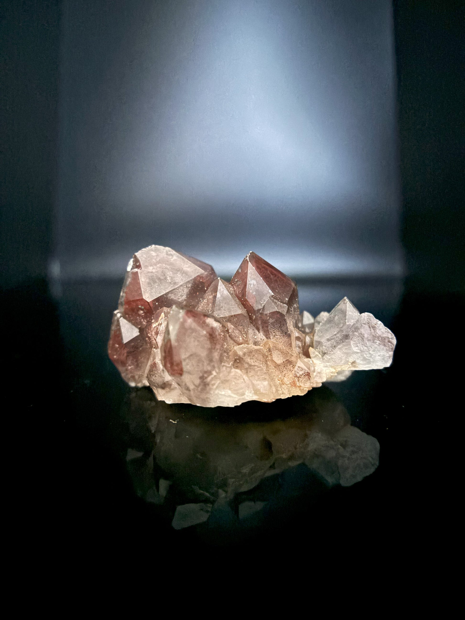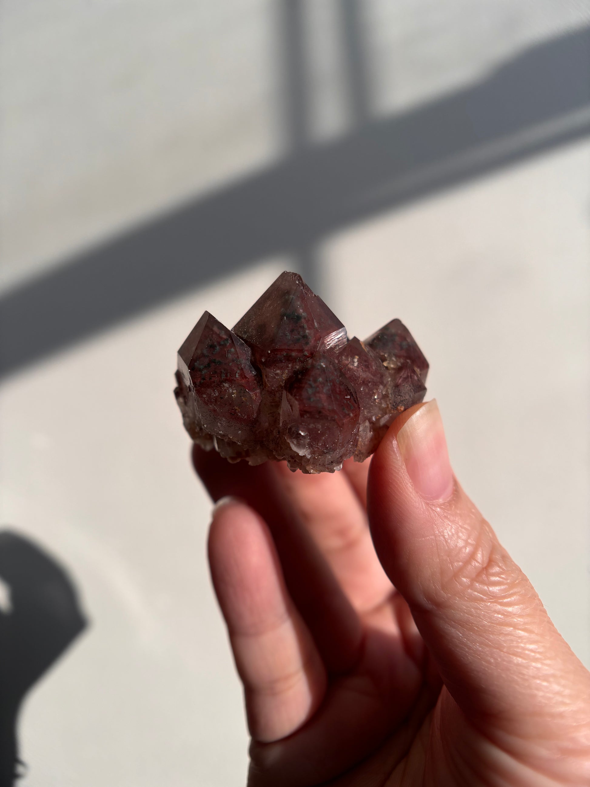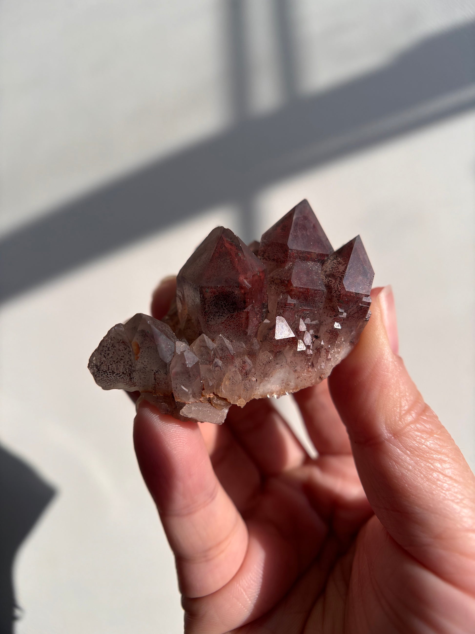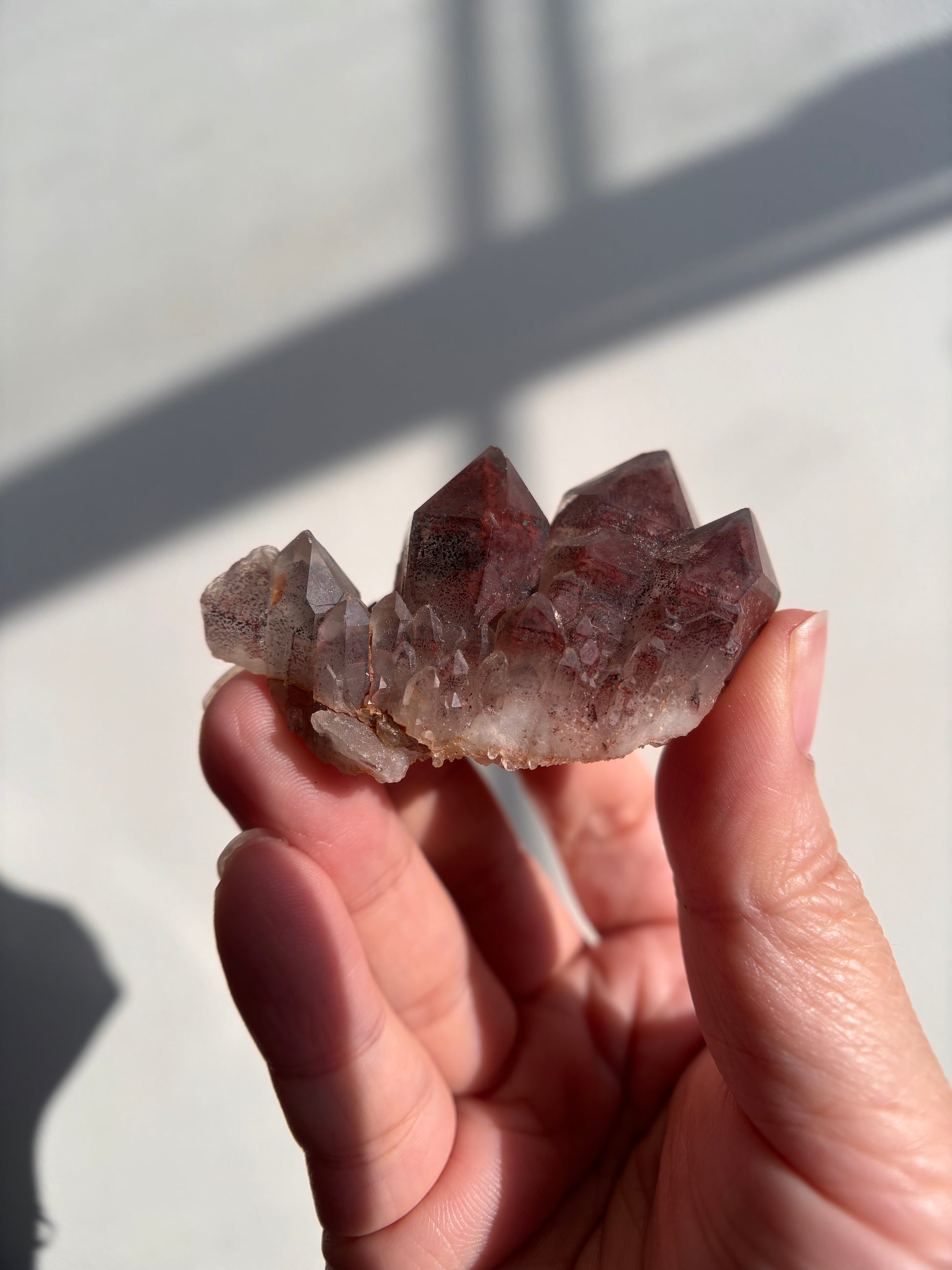 This Red Phantom Quartz, named "Ishuko," draws its fiery power from the red hematite inclusions, symbolizing the flames of one's transformation and inner strength. Ishuko reminds you that like a fireplace, your core holds an eternal fire, capable of burning away the old and igniting new life and direction.