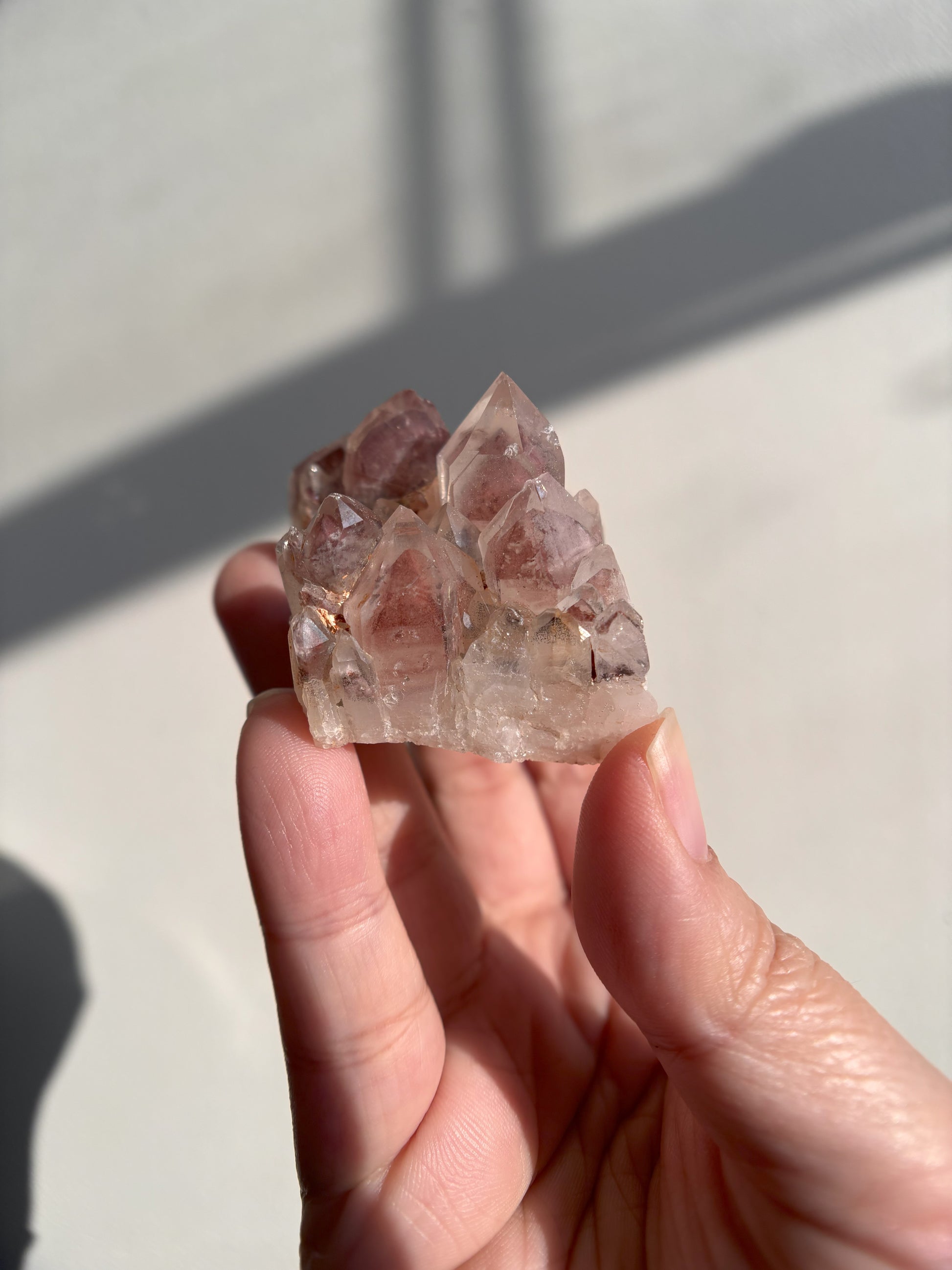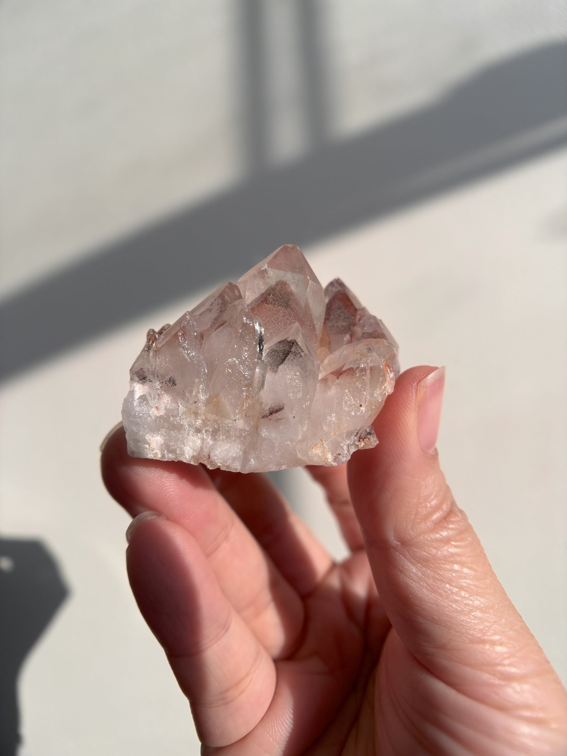 This Red Phantom Quartz, named "Ishuko," draws its fiery power from the red hematite inclusions, symbolizing the flames of one's transformation and inner strength. Ishuko reminds you that like a fireplace, your core holds an eternal fire, capable of burning away the old and igniting new life and direction.