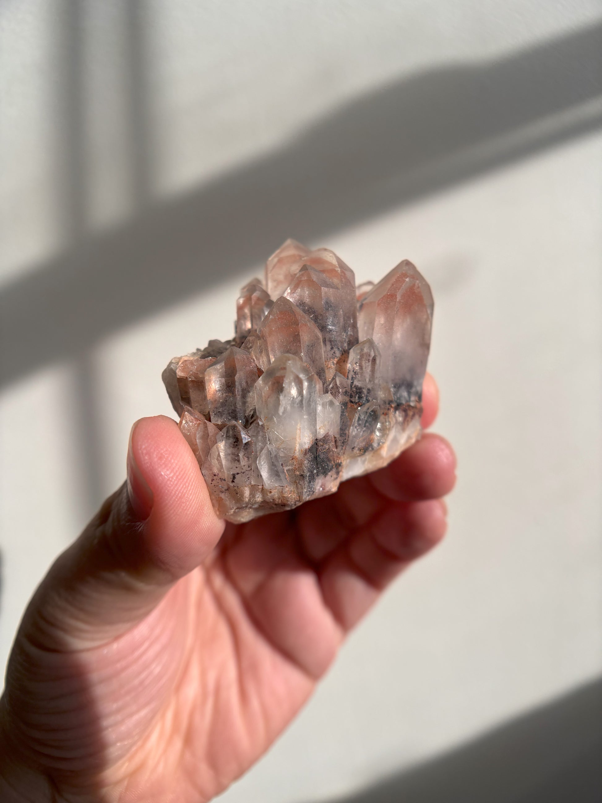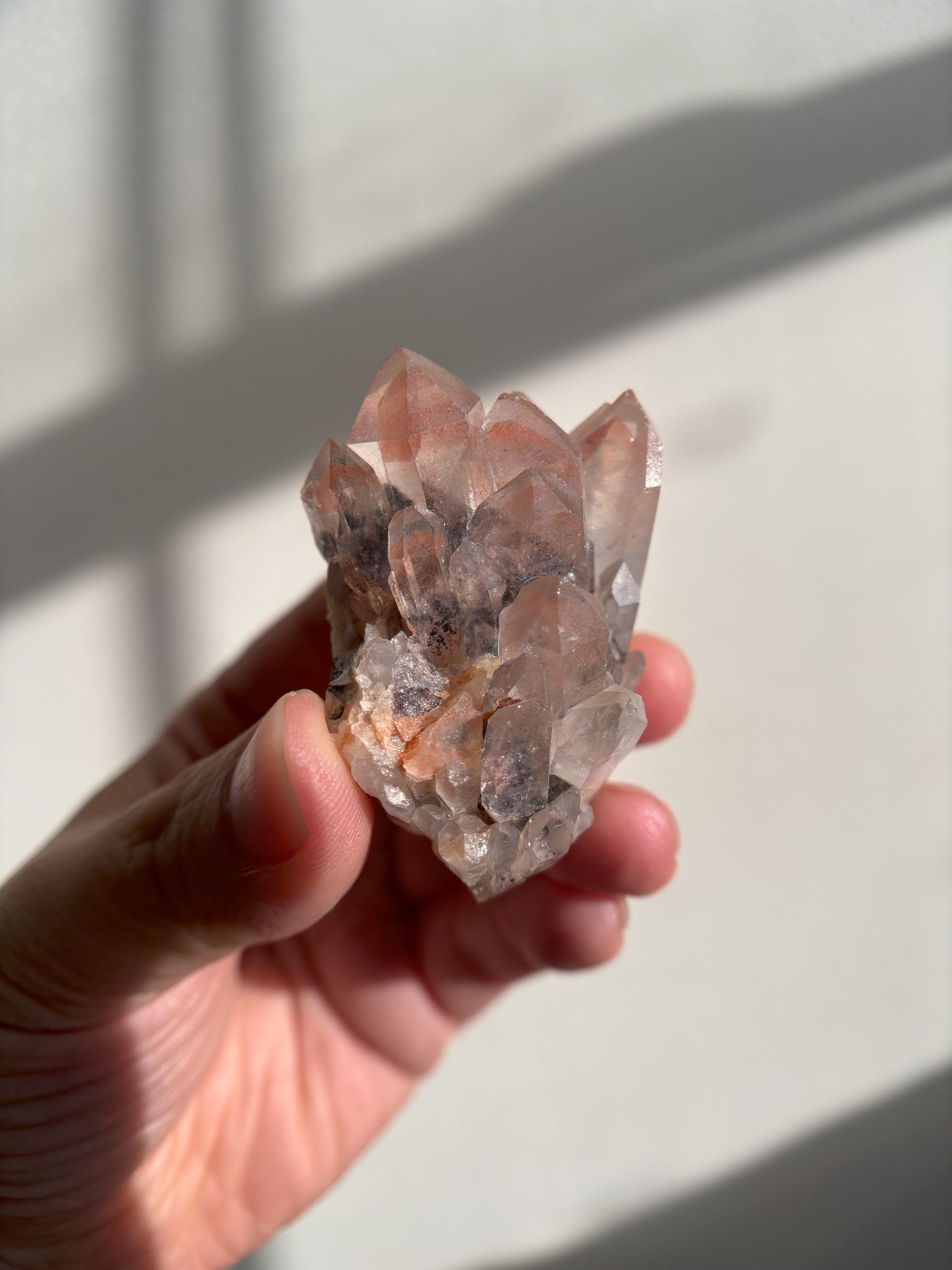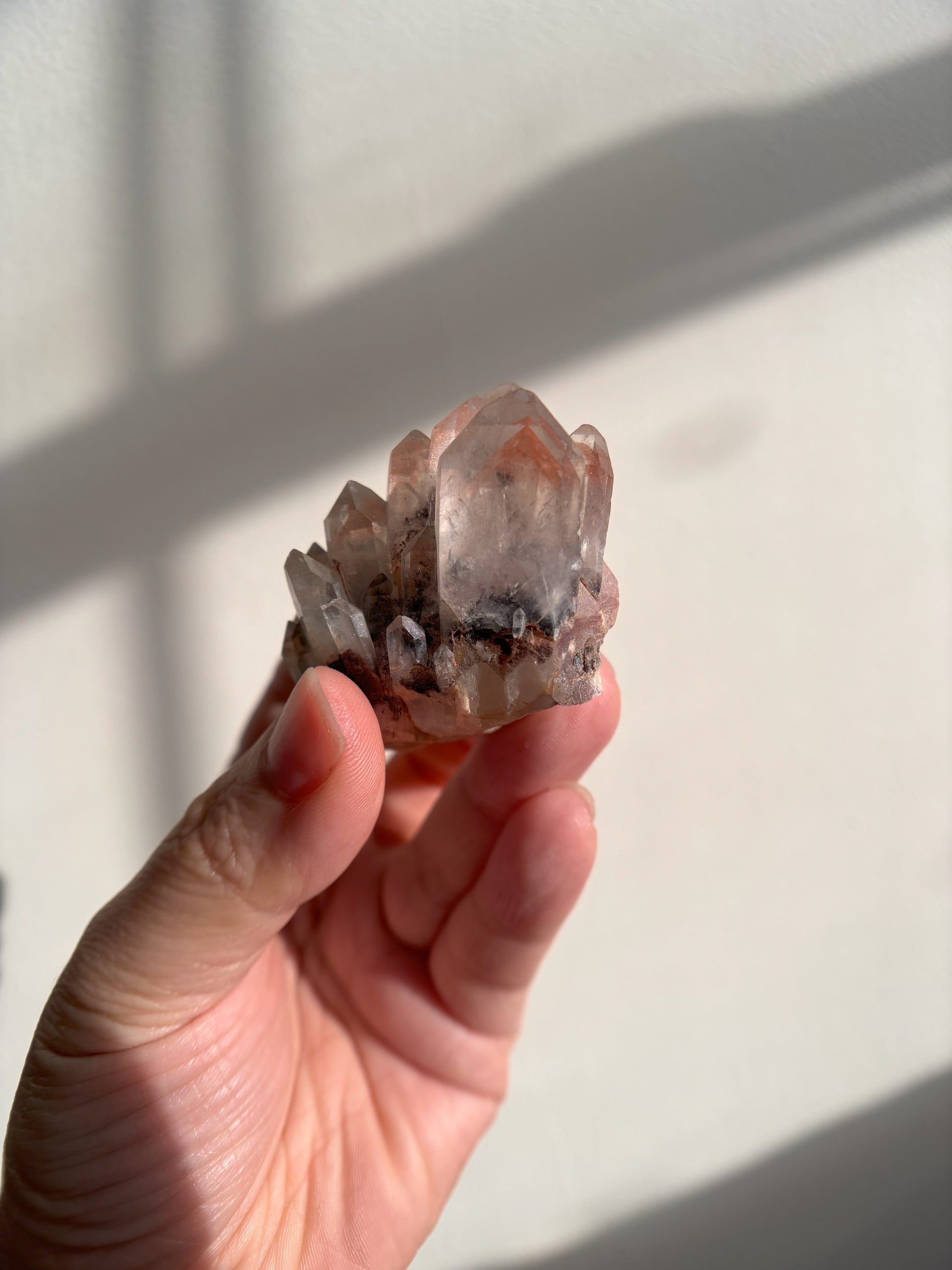 This Red Phantom Quartz, named "Ishuko," draws its fiery power from the red hematite inclusions, symbolizing the flames of one's transformation and inner strength. Ishuko reminds you that like a fireplace, your core holds an eternal fire, capable of burning away the old and igniting new life and direction.