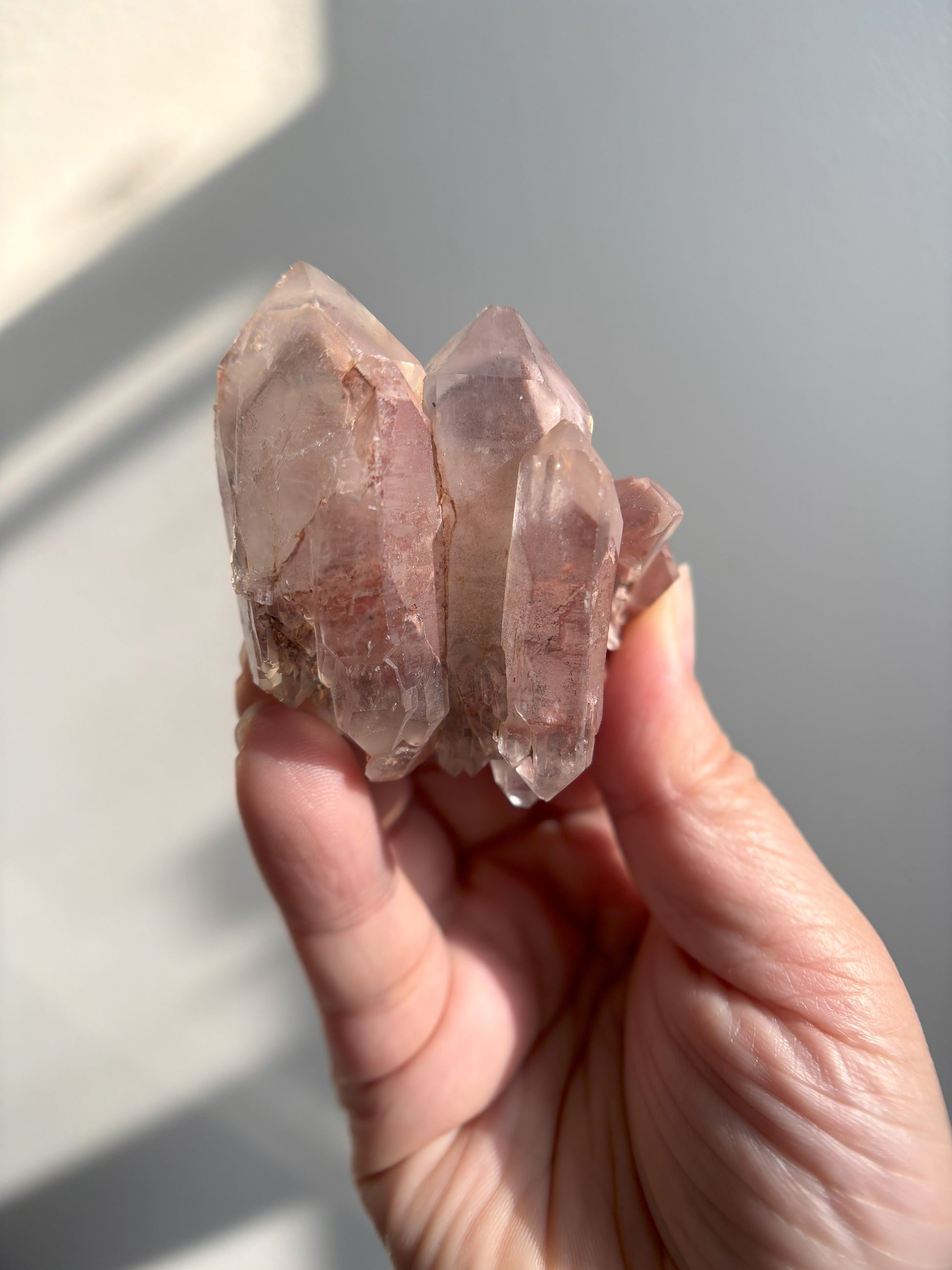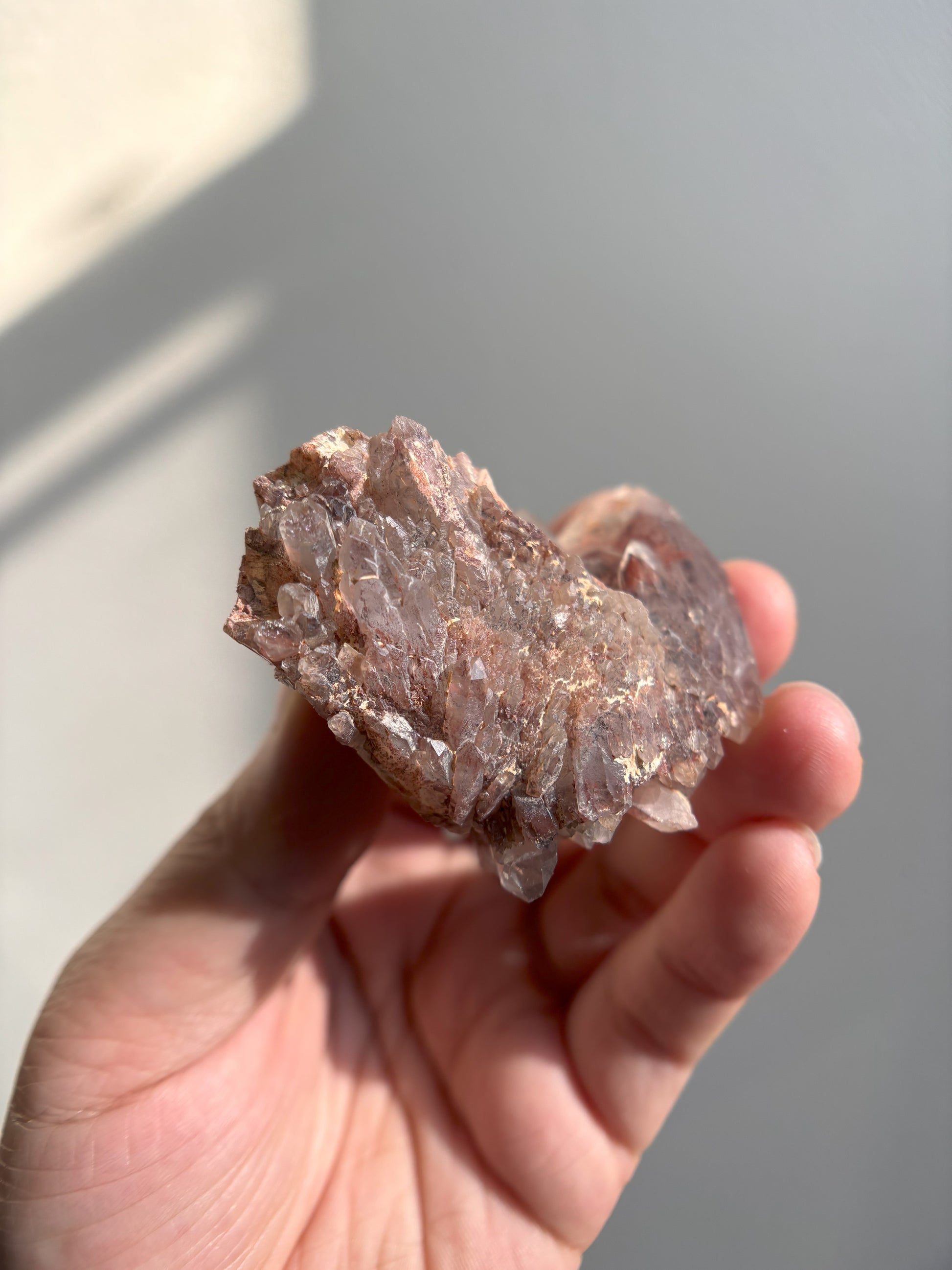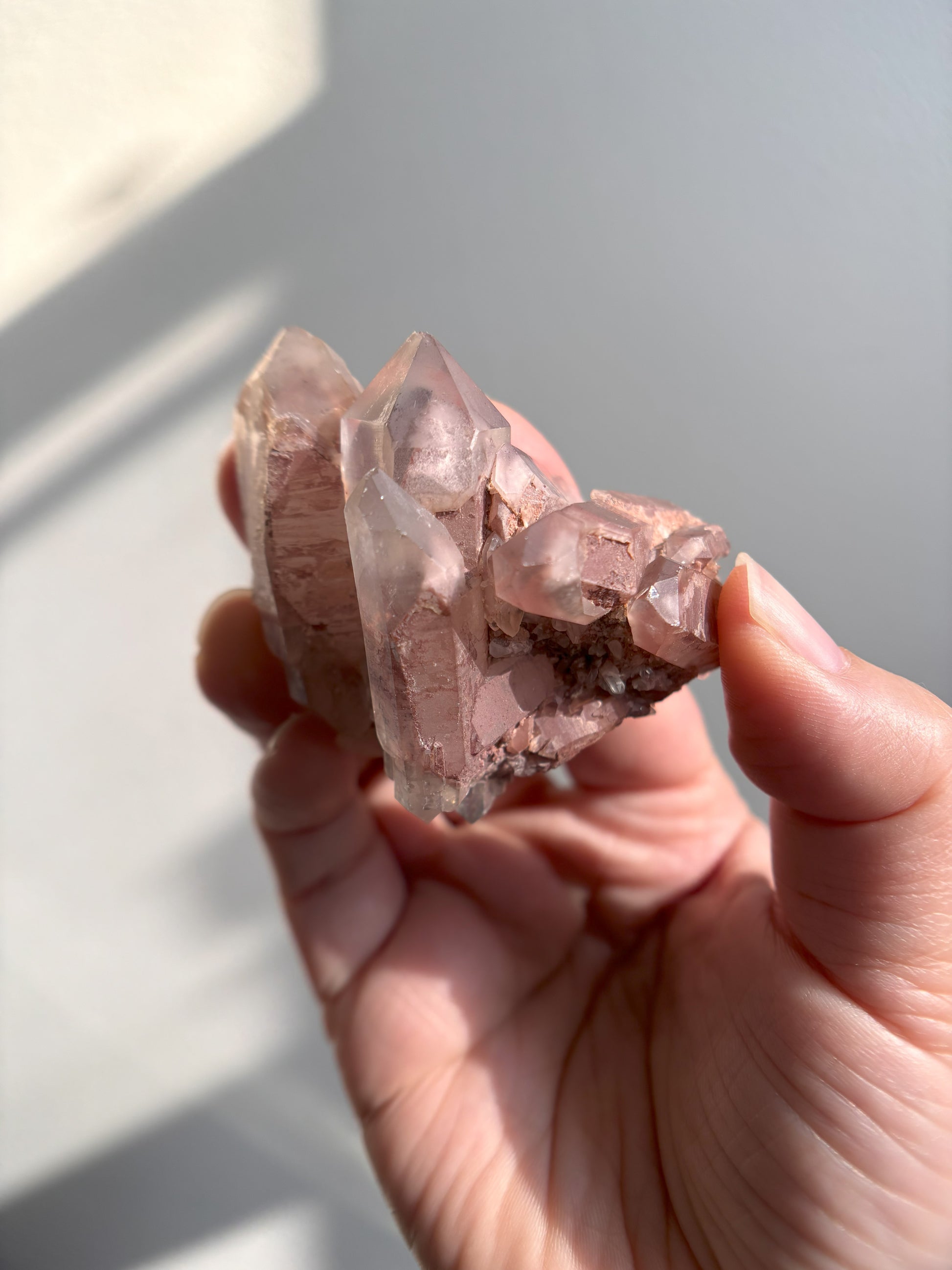 This Red Phantom Quartz, named "Ishuko," draws its fiery power from the red hematite inclusions, symbolizing the flames of one's transformation and inner strength. Ishuko reminds you that like a fireplace, your core holds an eternal fire, capable of burning away the old and igniting new life and direction.