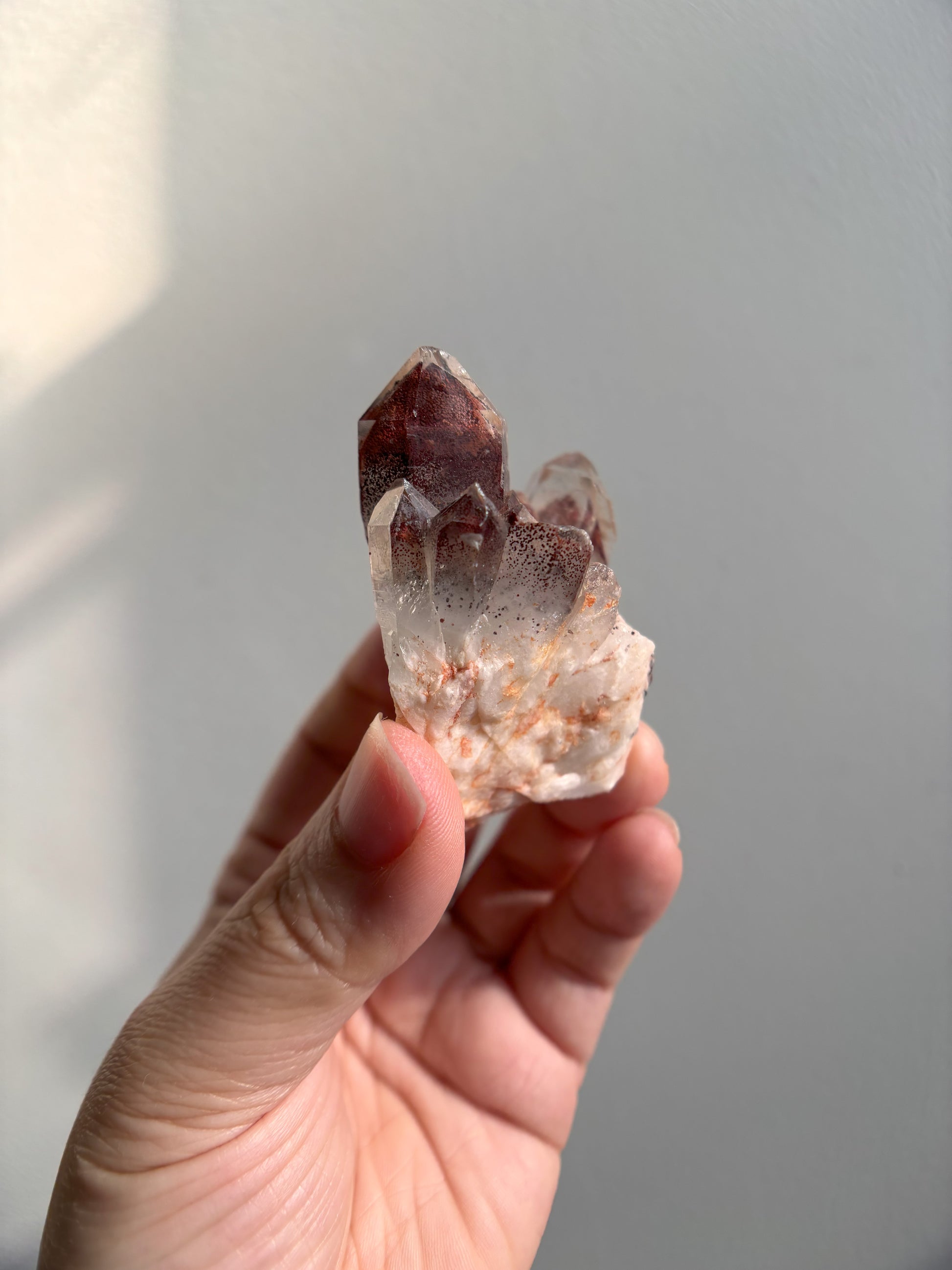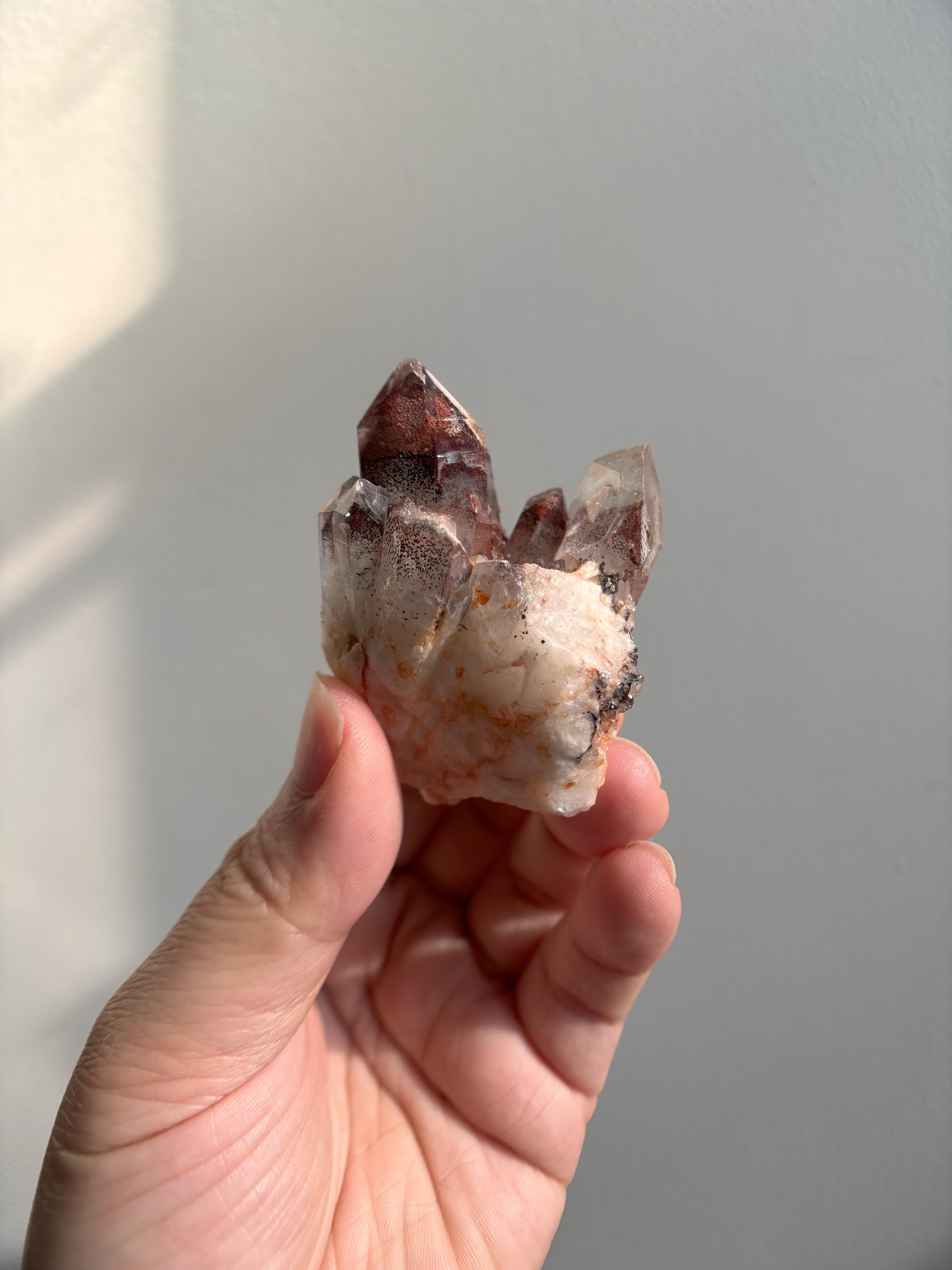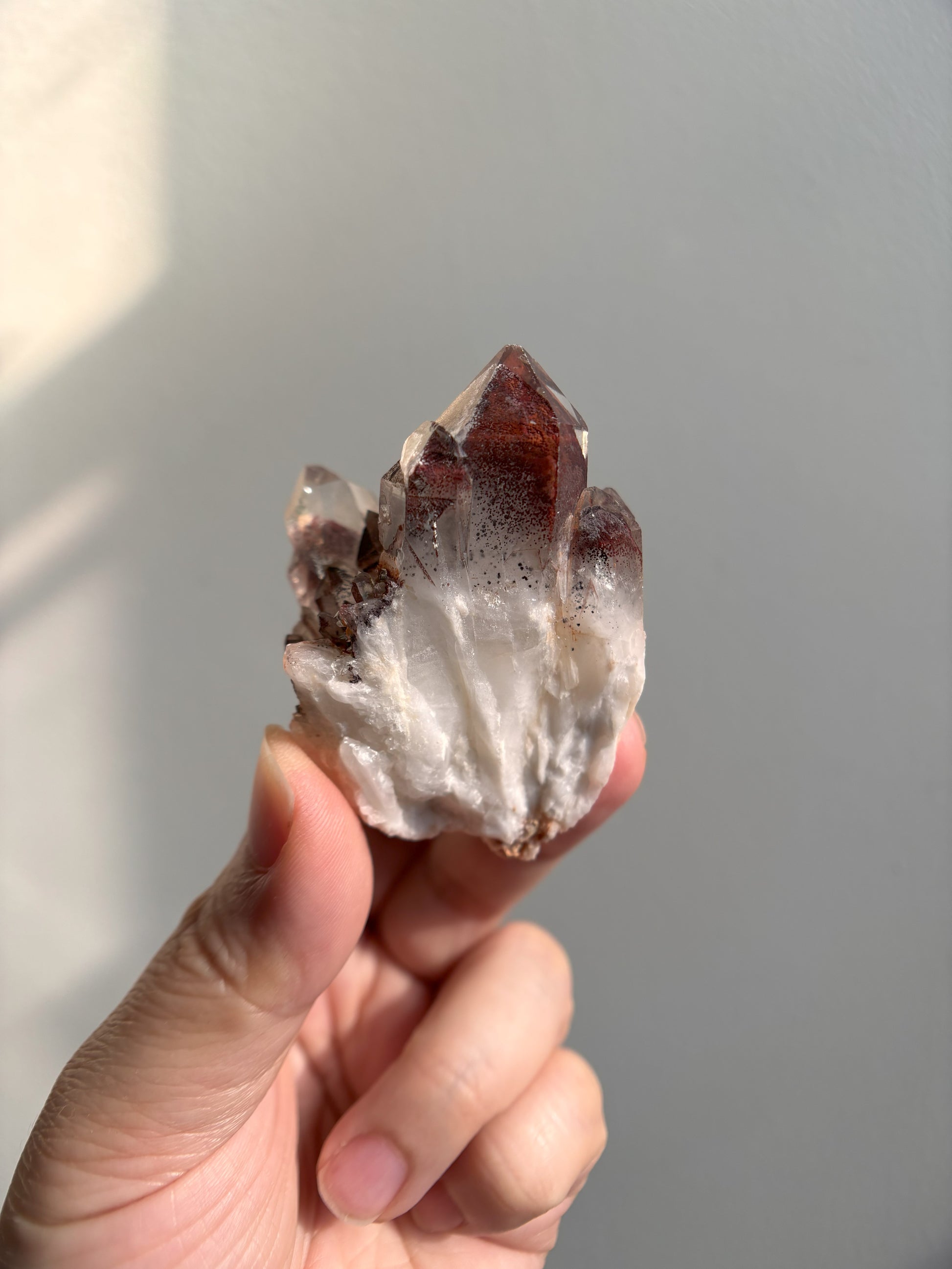 This Red Phantom Quartz, named "Ishuko," draws its fiery power from the red hematite inclusions, symbolizing the flames of one's transformation and inner strength. Ishuko reminds you that like a fireplace, your core holds an eternal fire, capable of burning away the old and igniting new life and direction.
