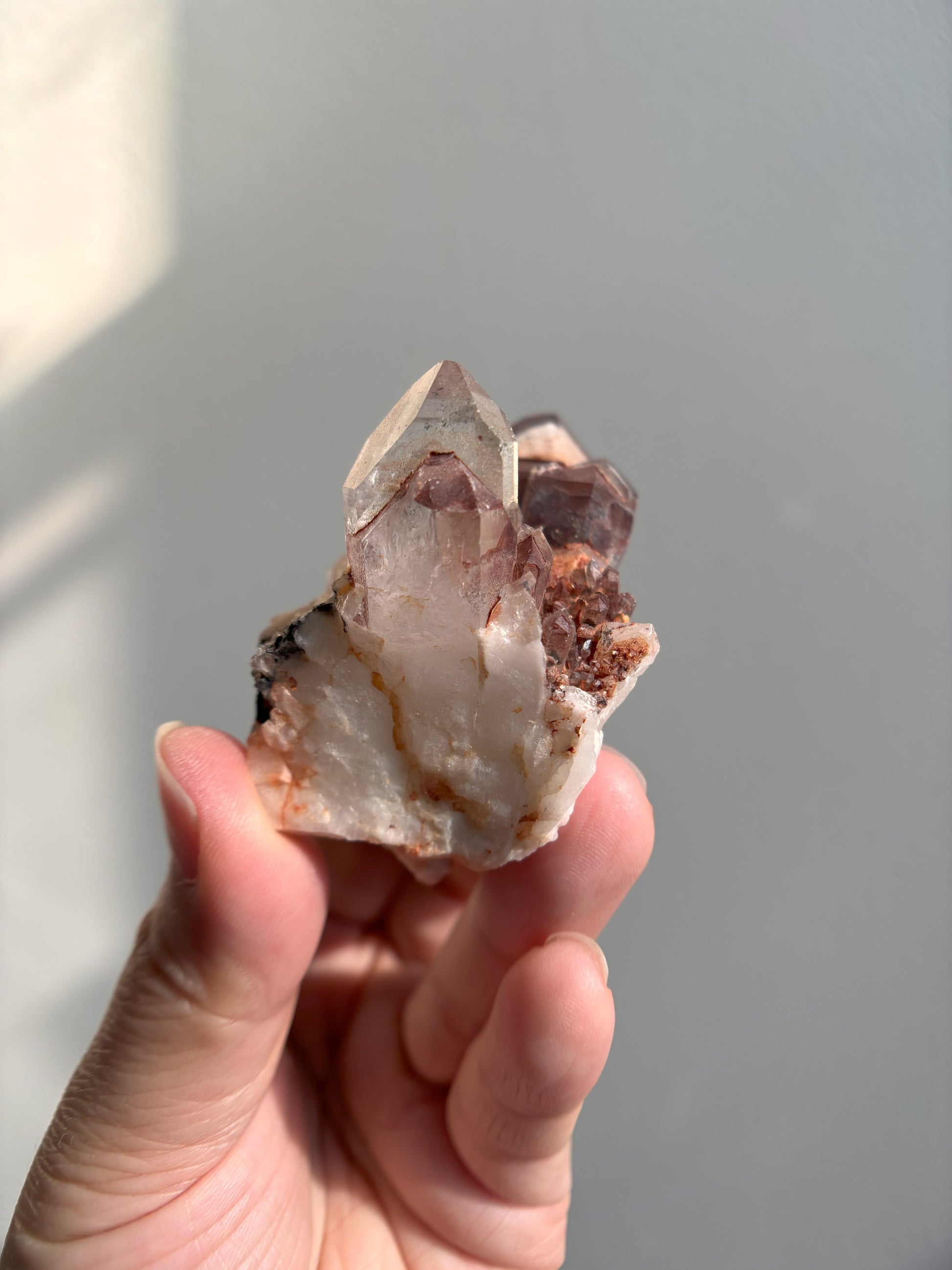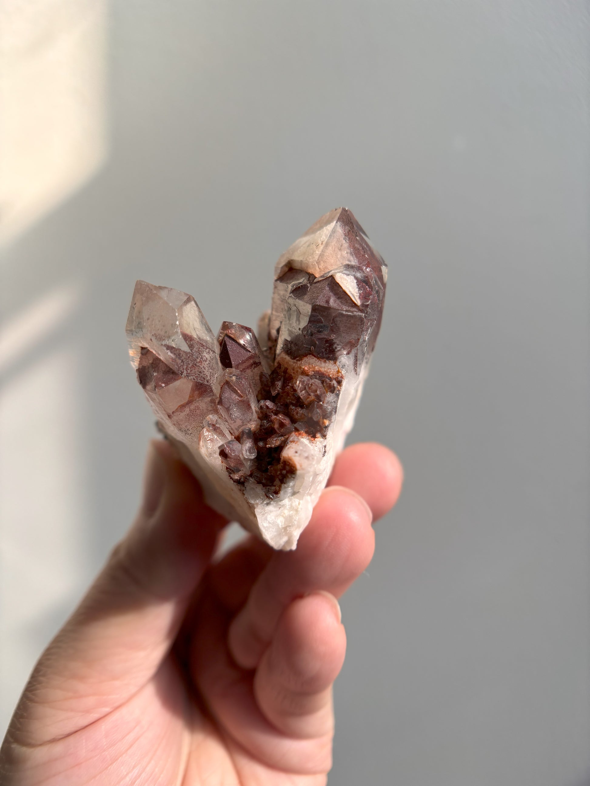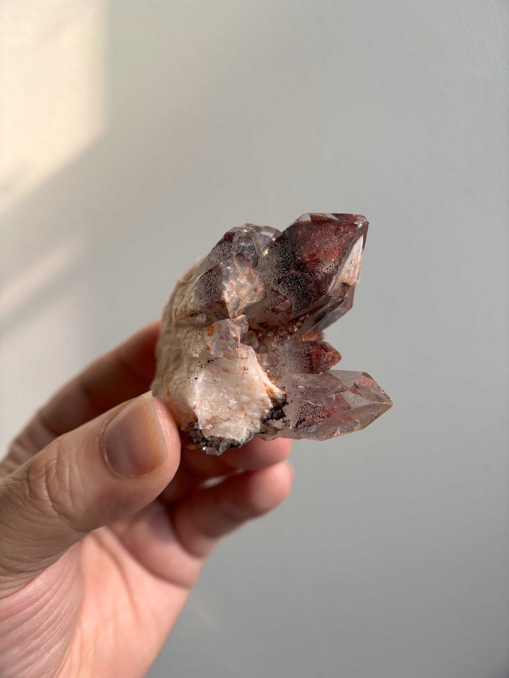This Red Phantom Quartz, named "Ishuko," draws its fiery power from the red hematite inclusions, symbolizing the flames of one's transformation and inner strength. Ishuko reminds you that like a fireplace, your core holds an eternal fire, capable of burning away the old and igniting new life and direction.