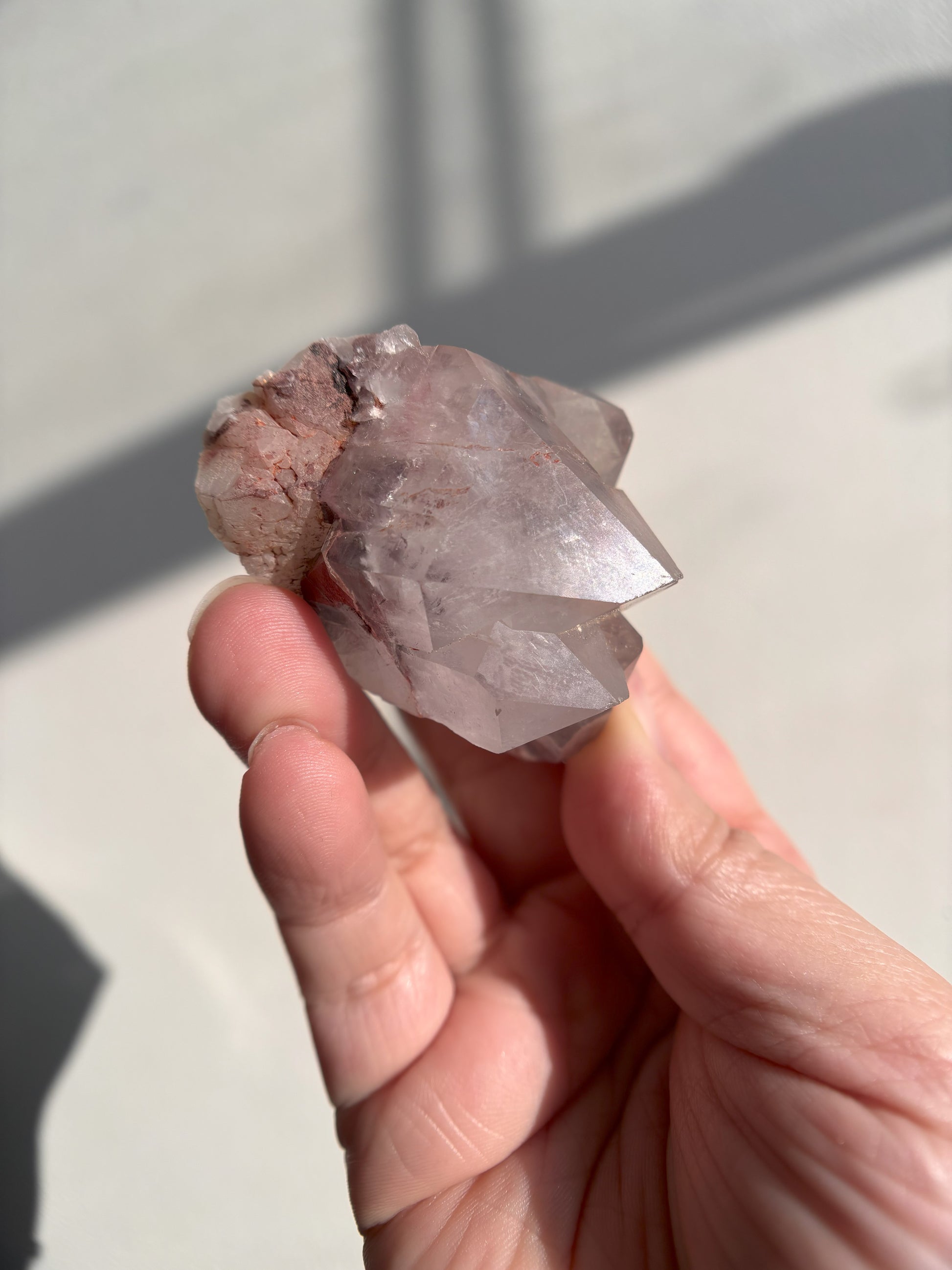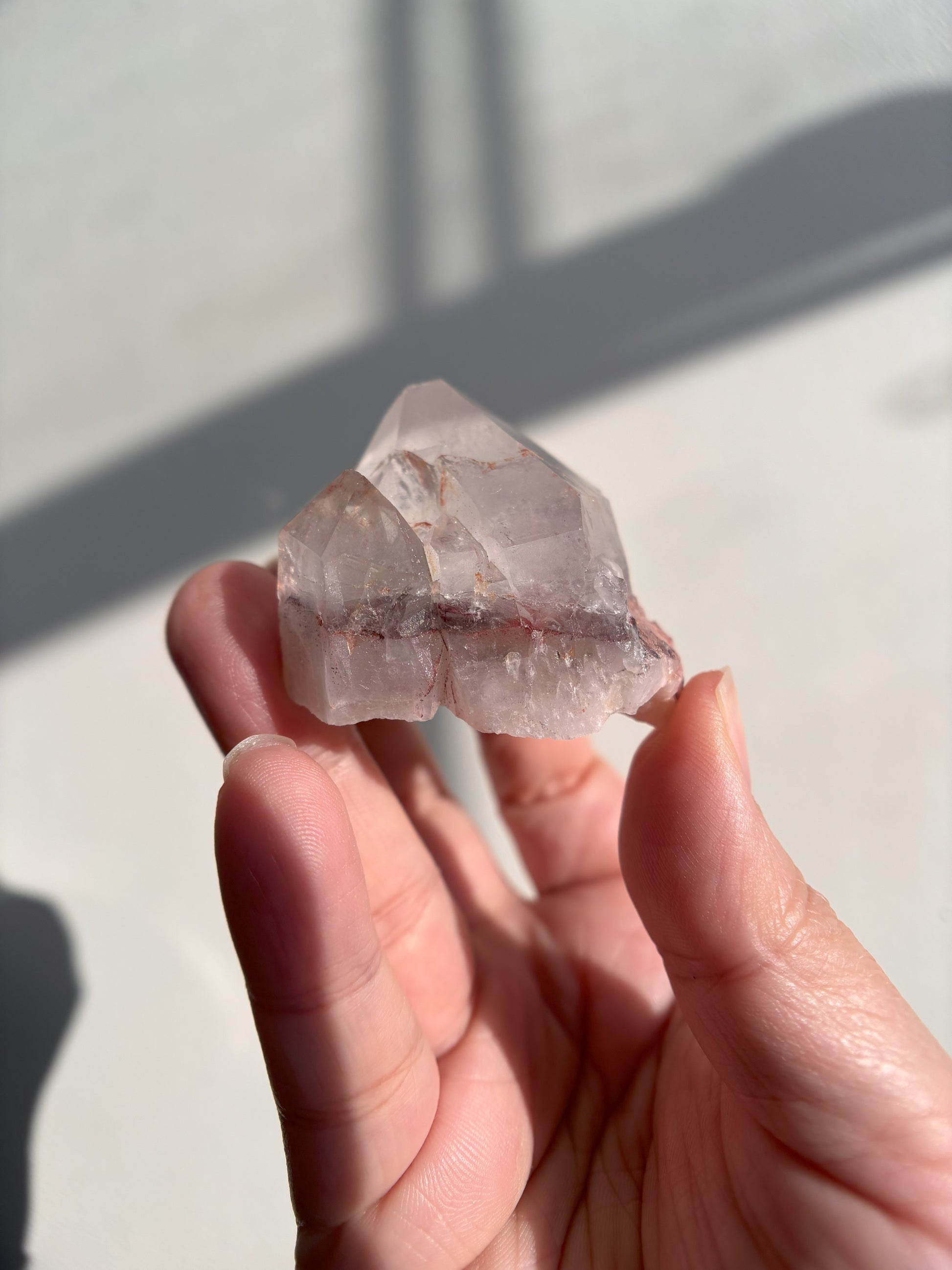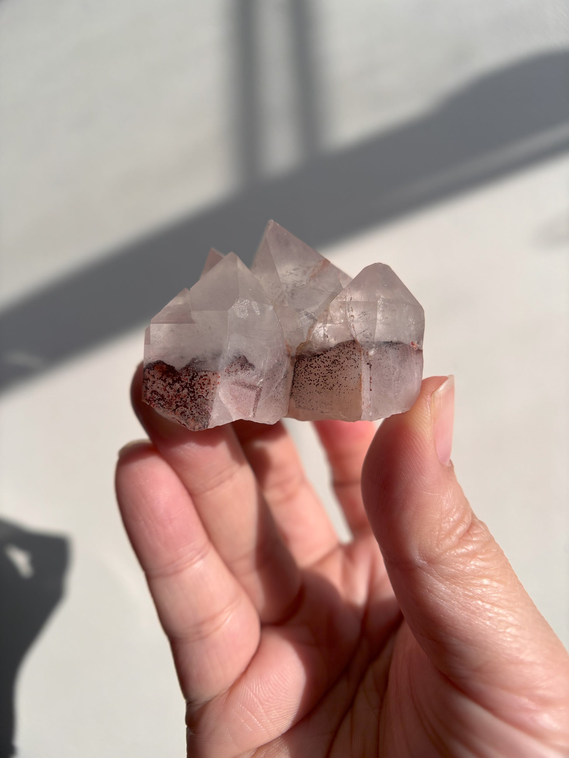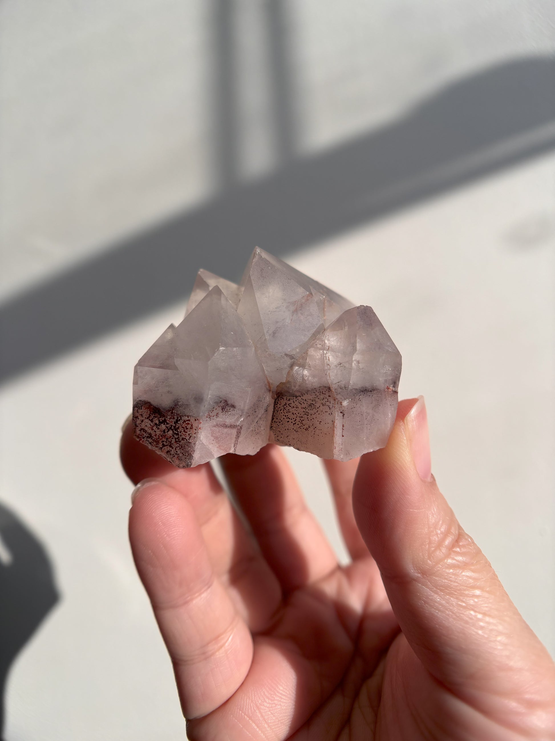 This Red Phantom Quartz, named "Ishuko," draws its fiery power from the red hematite inclusions, symbolizing the flames of one's transformation and inner strength. Ishuko reminds you that like a fireplace, your core holds an eternal fire, capable of burning away the old and igniting new life and direction.