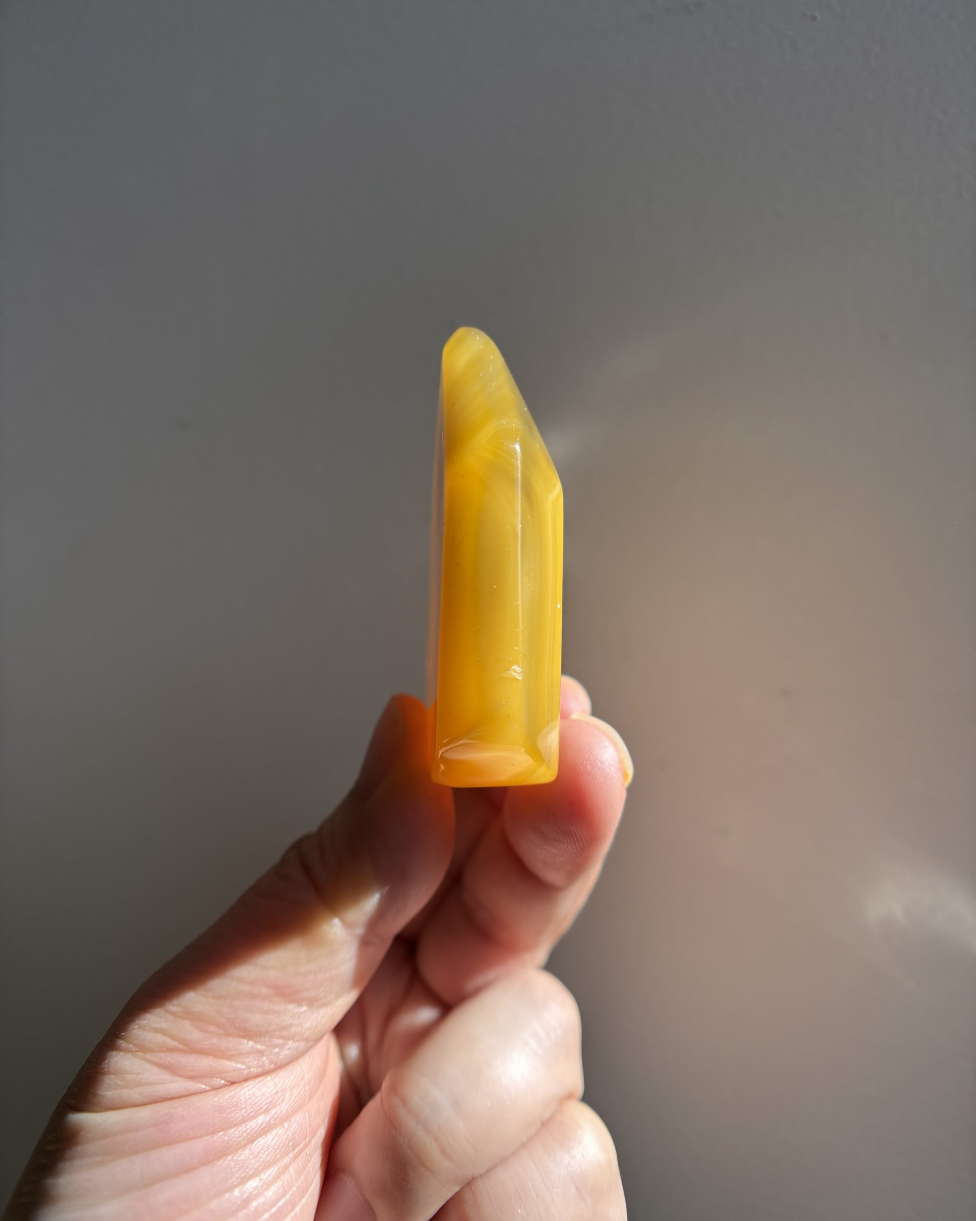Shaped into a mini standing point with a flat, polished base, this form is designed to stand upright and gently direct grounding energy upward while remaining firmly anchored. These pieces are well suited for desks, shelves, or small personal spaces, offering quiet support, balance, and composure throughout daily life.
