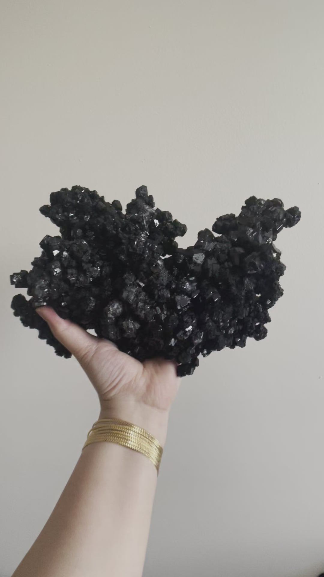 This Namibian Black Tourmaline statement piece has minor Calcite on the back. This mix enhances Black Tourmaline’s power and capabilities. It is known to be a negative energy transmuter and guardian, by driving destructive energy out of your environment and purifying it, while also protecting your auric field. It also helps one to think more clearly, have more focus and self-awareness, and to journey forward knowing negative energy cannot stop or slow you down.