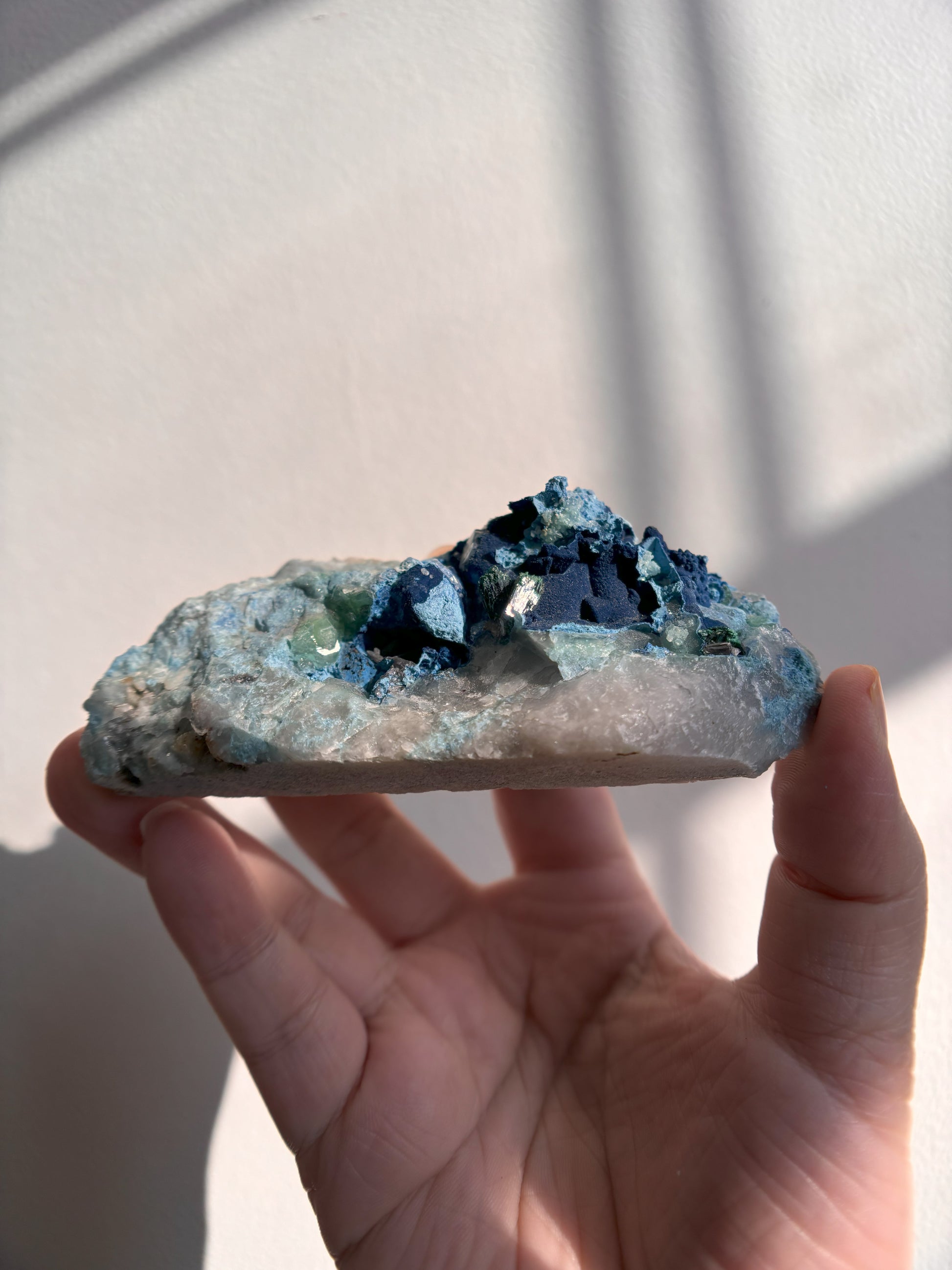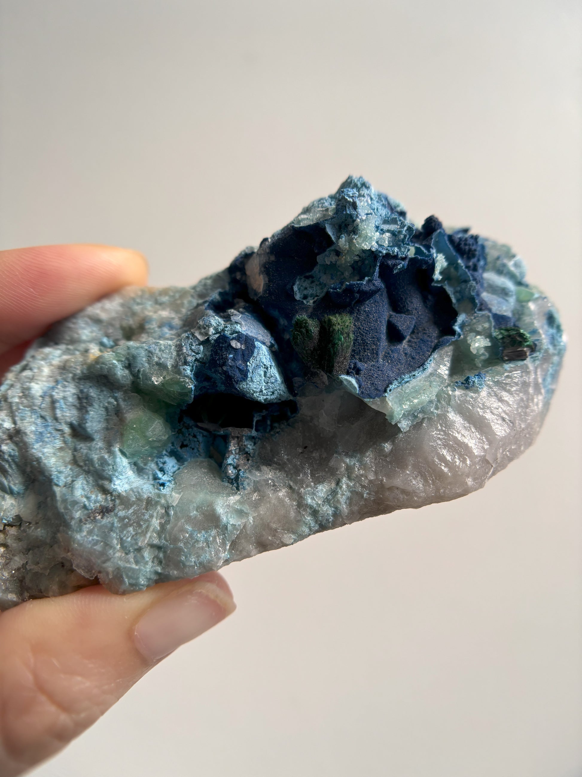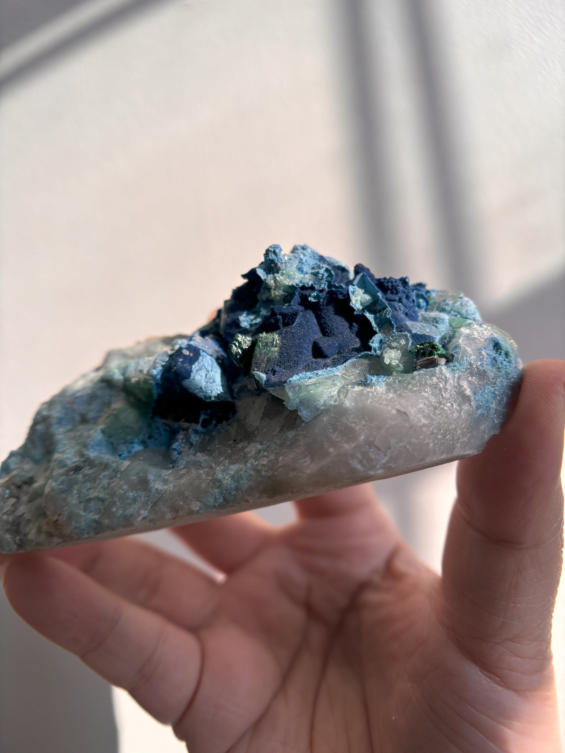 Shattuckite and Malachite on Quartz 139g