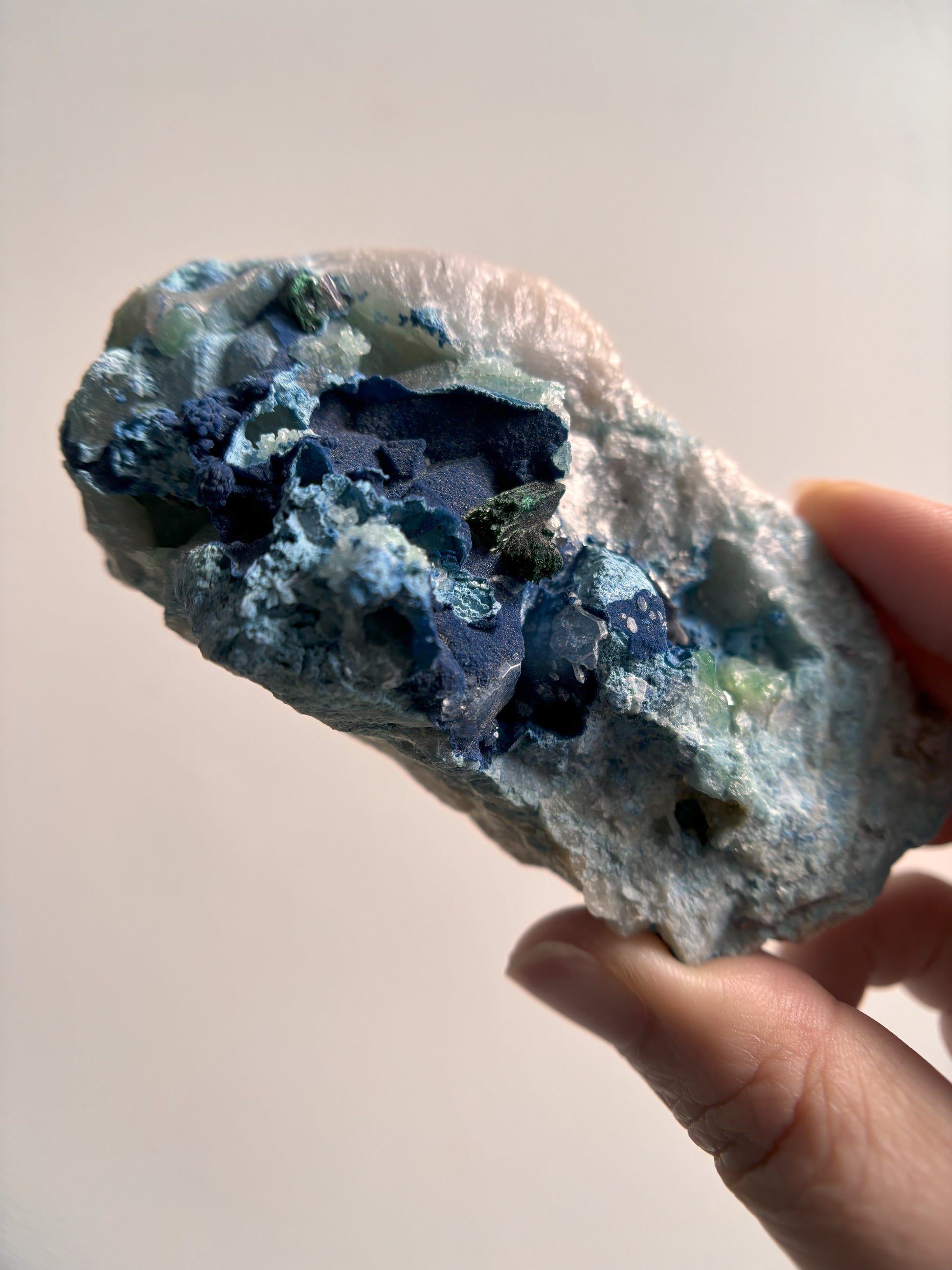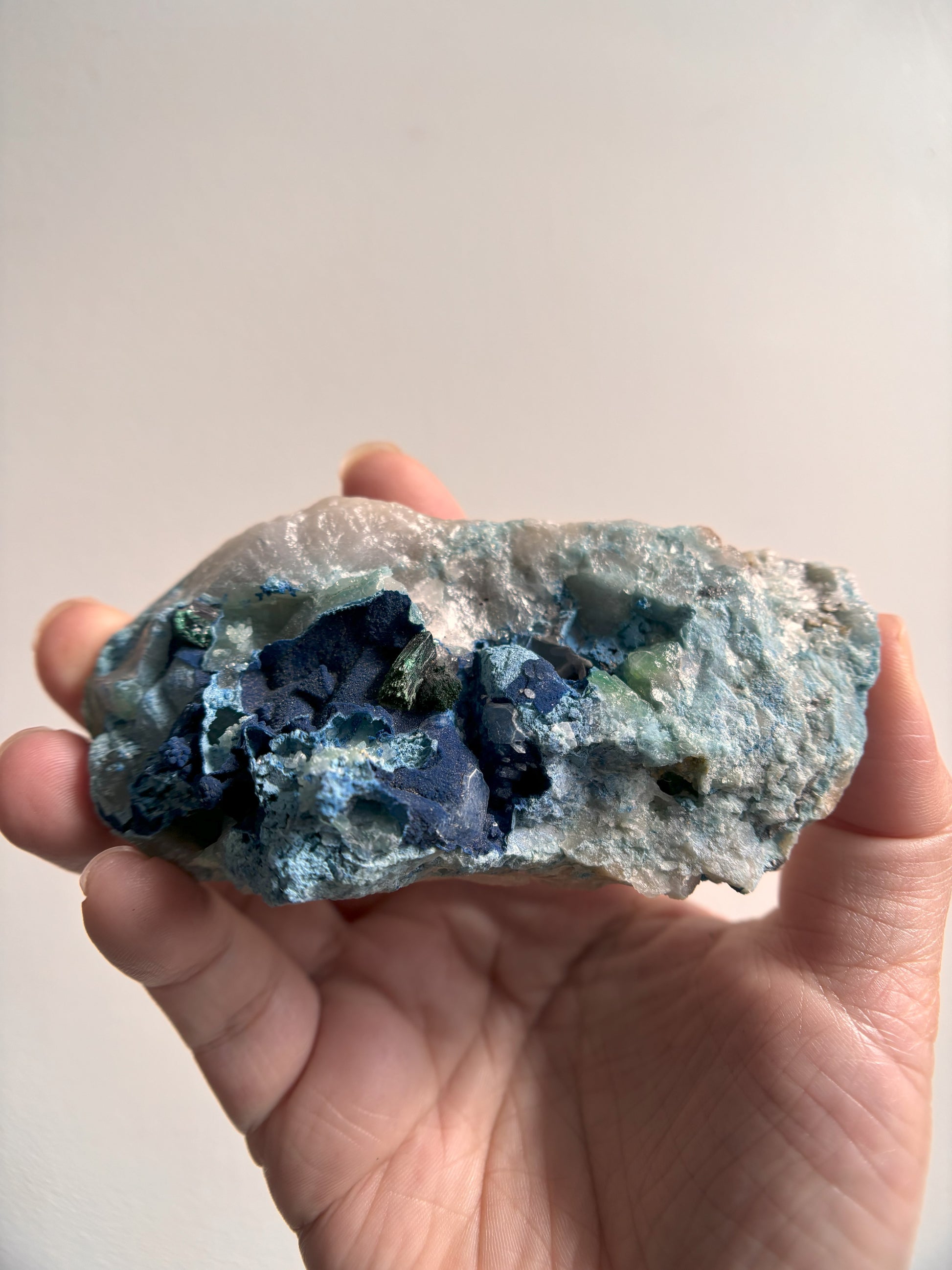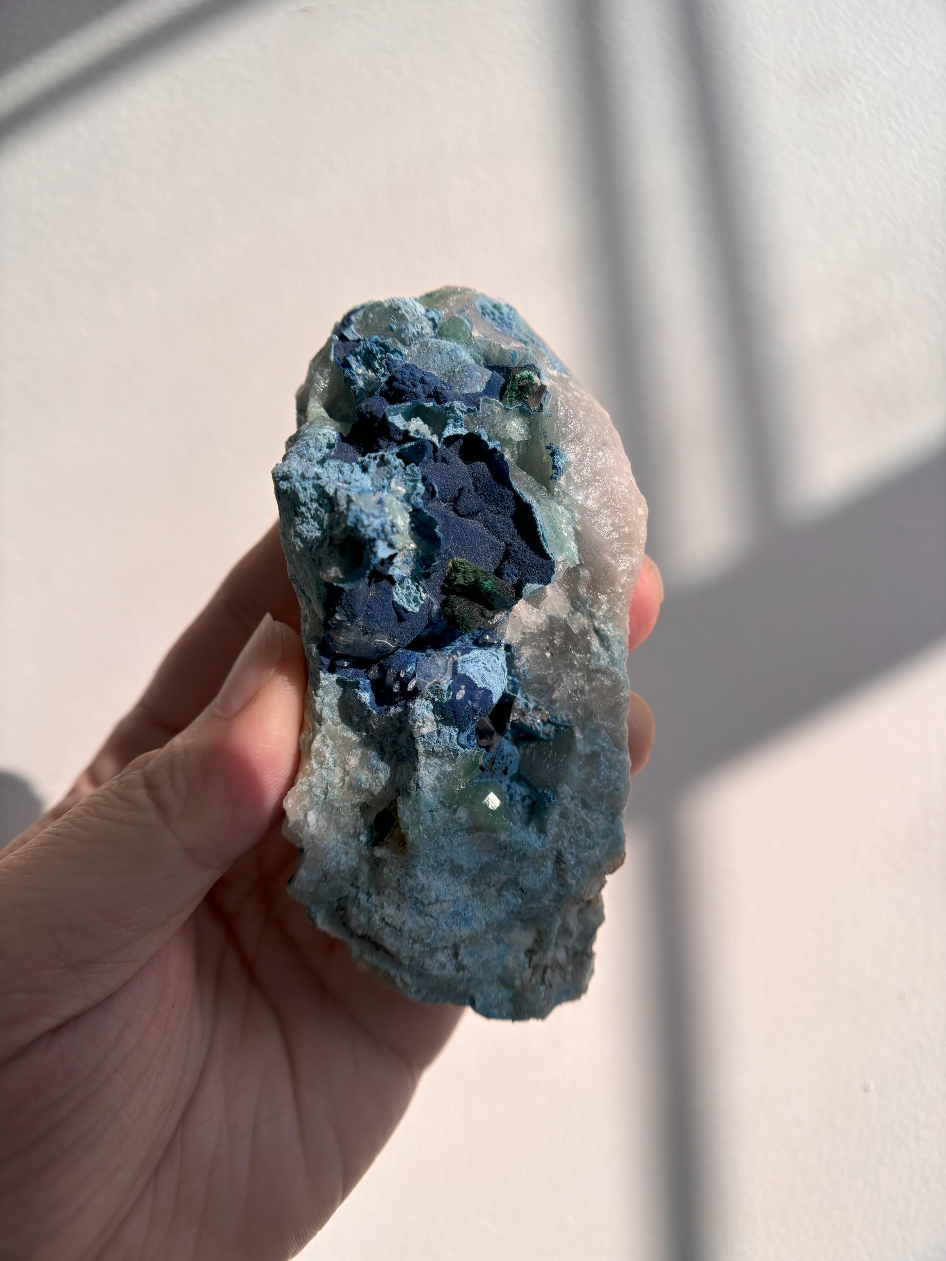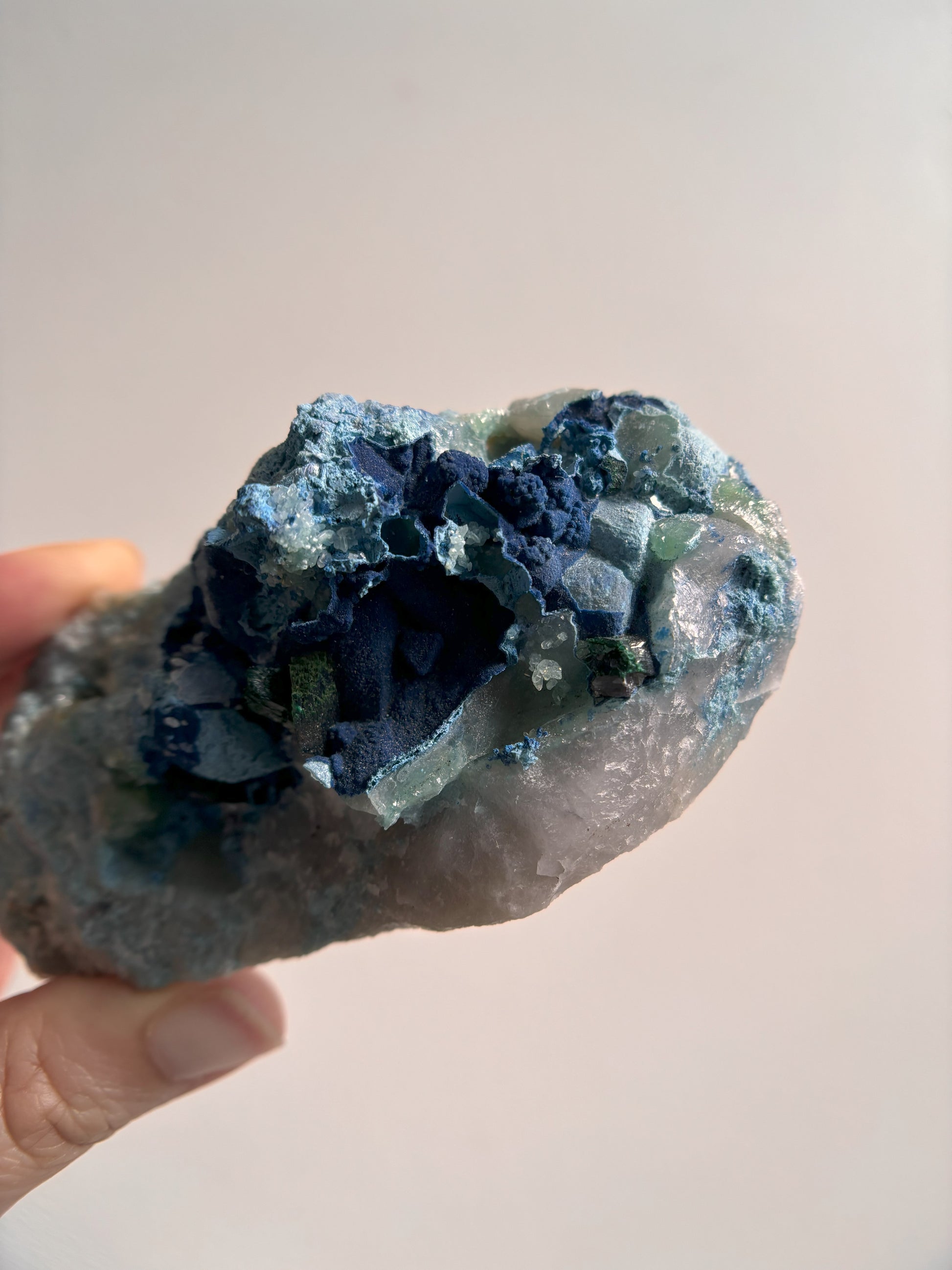 Shattuckite and Malachite on Quartz 139g