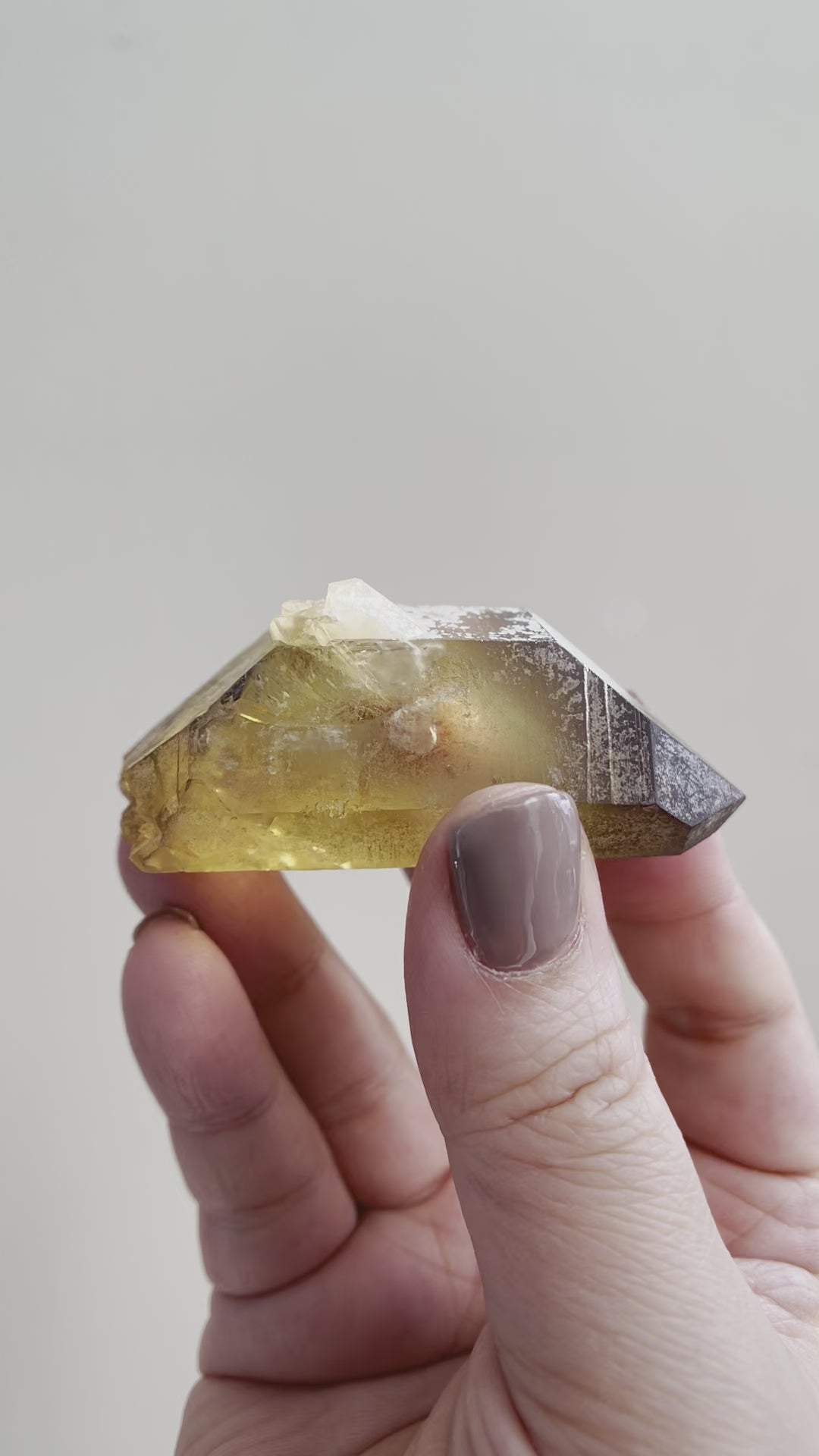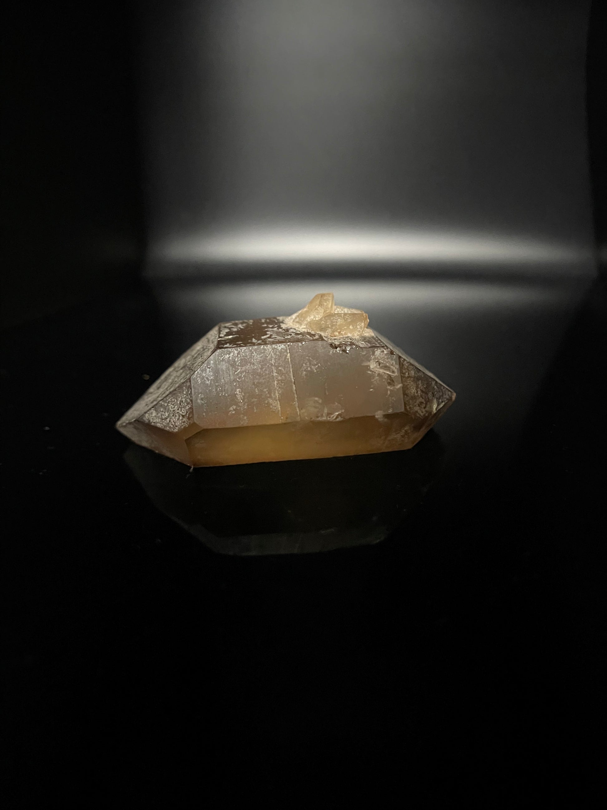 This piece is double terminated and has a self healed bottom. It also has light phantoms and a mini cluster merged into a penetrator.