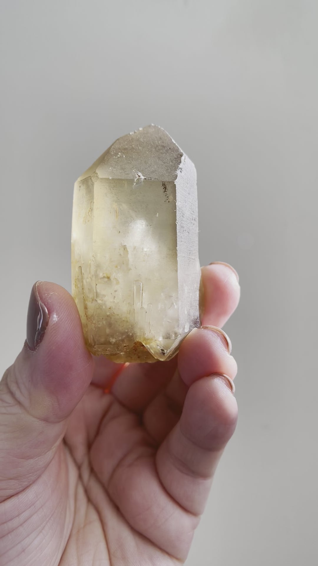 This piece is a double terminated point with an isis crystal and a self healed bottom. There are also barcodes near the key indentation.